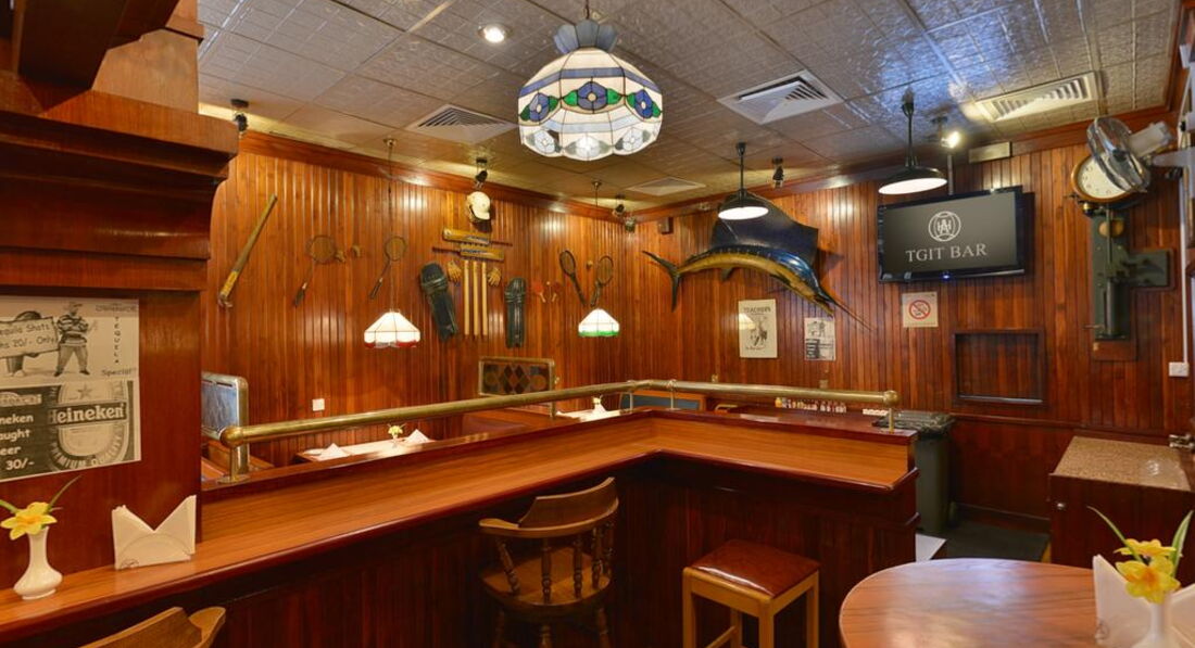 • універсальний бар TGI Thursday's, оформлений в американському стилі, пропонує великий вибір напоїв, коктейлі, закуски.