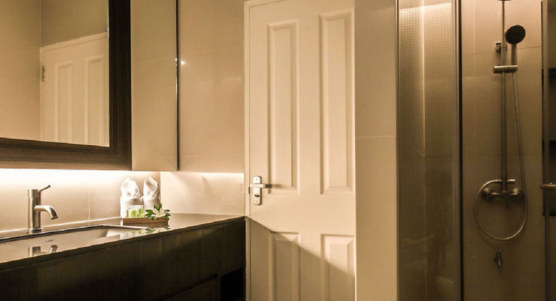 Нам отель очень понравился.У нас было два номера, один для взрослых, другой для детей (стоимость двух номеров оказалась намного меньше, чем за семейный номер).Номера просторные, чистенькие.Кровать большая, удобная.В номере есть плита, микроволновая печь, термопот, тостер, холодильник и вся необходимая для приготовления еды посуда.Чай, кофе, сахар тоже ежедневно приносили.Кондиционер охлаждал исправно, но жутко шумел.Ночью приходилось ,то включать , то выключать, уж очень шум мешал.Или, как вариант можно беруши !Кстати в соседнем номере у детей кондей был намного тише.Расположен кондей не совсем удачно- напротив кровати, и тот, кто лежит на стороне , которая дальше от кондиционера рискует простудится.Ванная комната с туалетом обычная (душ, унитаз, раковина).Все чистенько.Мыльно рыльные принадлежности в наличии. Фен тоже неплохой, аж на 1600 ватт, так что свой можно и не брать.
