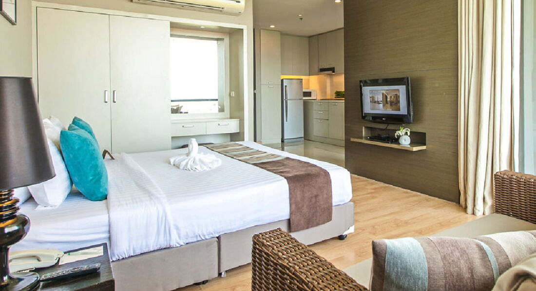 Апартаменти розташовані осторонь міського шуму та суєти, але при цьому в кроковій доступності до барів, ресторанів, розважальних закладів та торгових центрів. Важливо, що неподалік є транспортна інфраструктура (таксі, туктук). Завдяки тому, що територія комплексу закрита, у готелі тихо та спокійно. Рекомендуємо для молоді та сім'ям з дітьми.