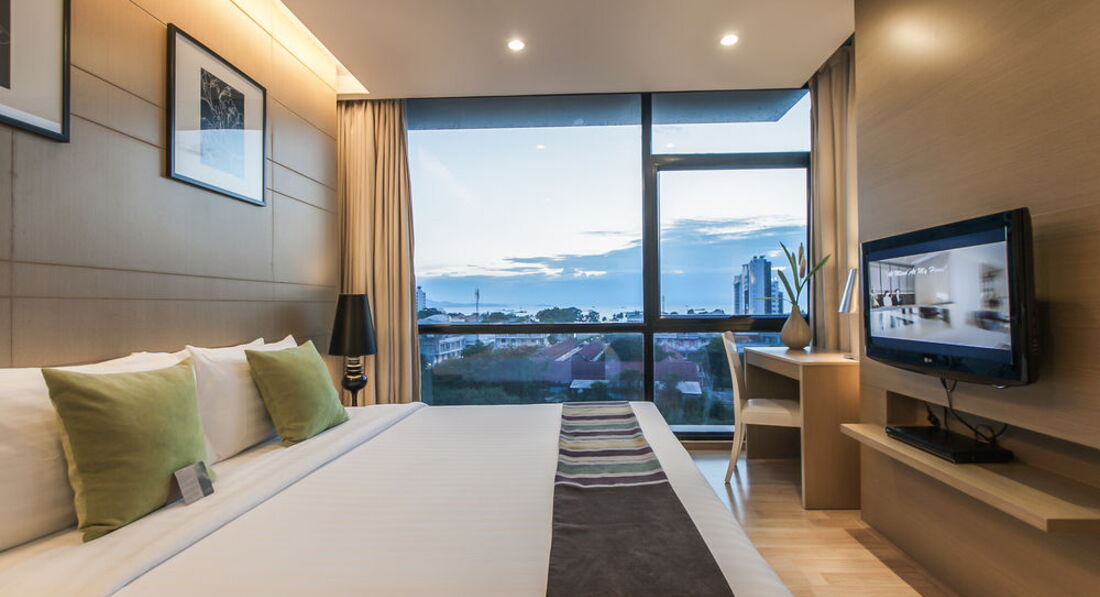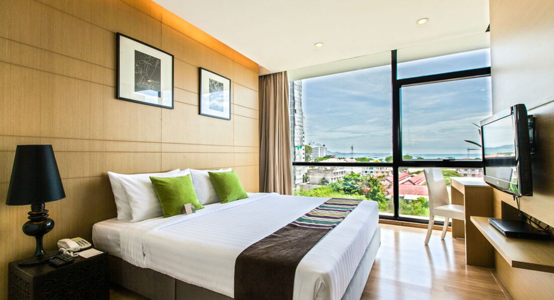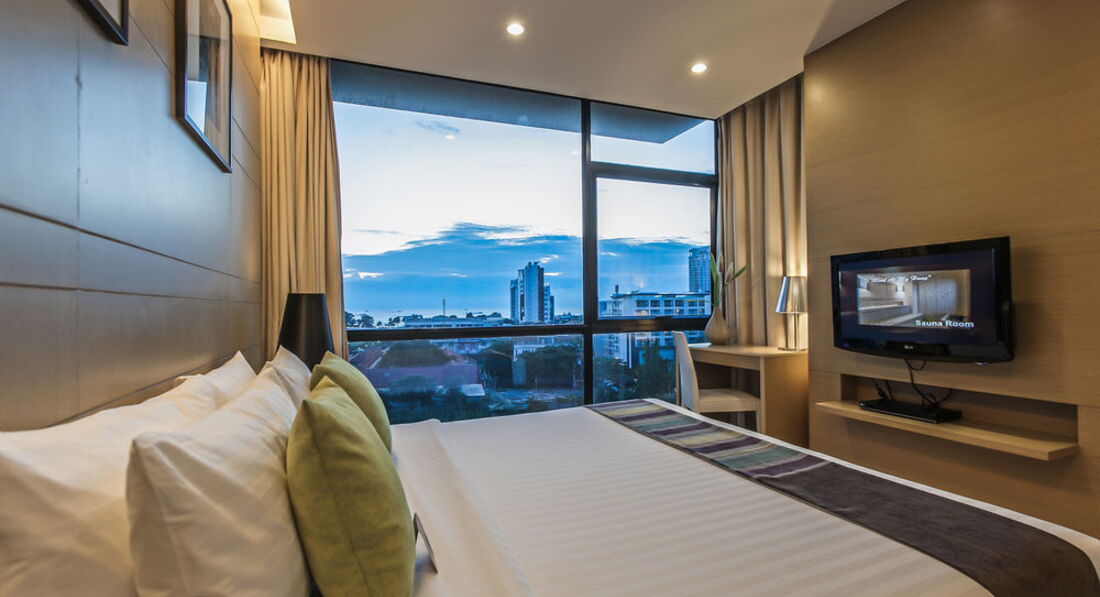 Отель отличный для семьи, парочек или одному, очень тихо все номера в виде студий, нет арабов китайцев и япошек, чаще европейцы и не много тайцы культурные и тихие, отель почти новый или недавно обновляли. Ресепшн приветливый, но не облизывает с ног до головы ))) кто то жаловался что не обращают внимания да и слава богу, не назойливые.Очень радовались что русские тагильщики-идиоты там не засветились а потому к русским хорошее отношение. Для тех кто едет один, рядом знаменитая 6 сой, минут 15 пешком до Альказара,отель находится между 2 и 3 ей улицей что очень удобно нужно в центр 2 мин пешком до 3 ей улицы в сторону центра 10 мин на тук туке за 10-20бат/чел и ты у волкина. Нужно на начало бич роад - до второй улицы минута пешком и опять тук тук. Т.е ни машин ни громкой музыки, приходишь и отдыхаешь. В бассейне можно купаться и ночью, ни кто слова нам не говорил. Вид конечно может быть на пустырь с мусором может быть на бассейн, с обоих сторон видно море. Но нам на вид было пофигу так как в отеле были редко. Парковка для байков и машин.Бесплатно вай фай на всей территории отеля и внизу 2 компа. Прачесная,сушка, массажный салон,тренажерный зал(правда это скорее минус т.к без кондеров с открытыми дверьми) В номере все необходимое чтоб готовить завтраки тостер микроволновка плита(электро) холодильник и минимальный набор посуды. минут 5 пешком до Ирландского паба - хорошая атмосфера и цены на завтраки и выпивку. В целом отелю ставлю 5 потому что чистый новый тихий. После развлечений и шума по всей патайе попадаешь на островок тишины и спокойствия. Желаю всем приятного отдыха, если поеду в патайю думаю вернусь так как за 1200/день на двоих очень достойно.
