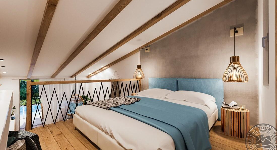 • Deluxe suite 2-level GV/SSV (боковий вид на море або вид на сад, дворівневий номер, на верхньому поверсі осн.ліжко – двоспальне, на нижньому поверсі дод. – 2 софи, макс. 4 чол., 40 м2)
