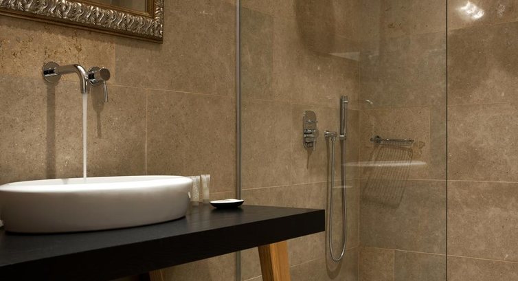 • сучасна ванна кімната з душем