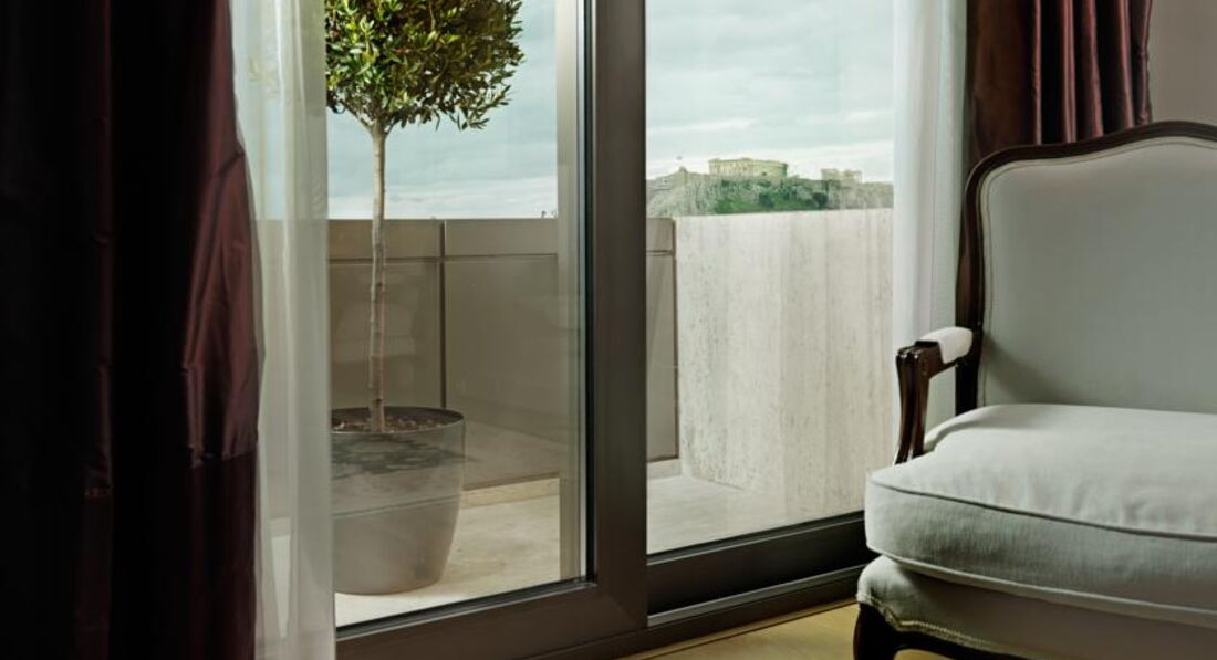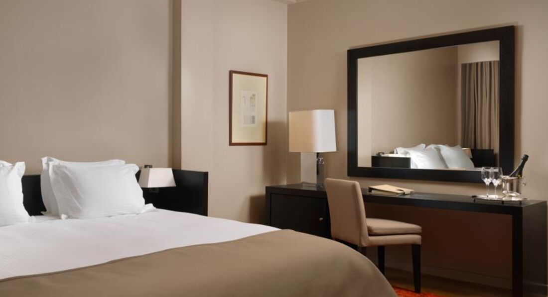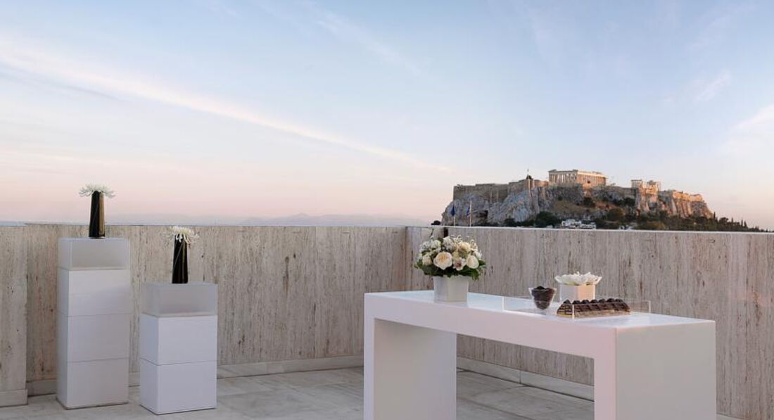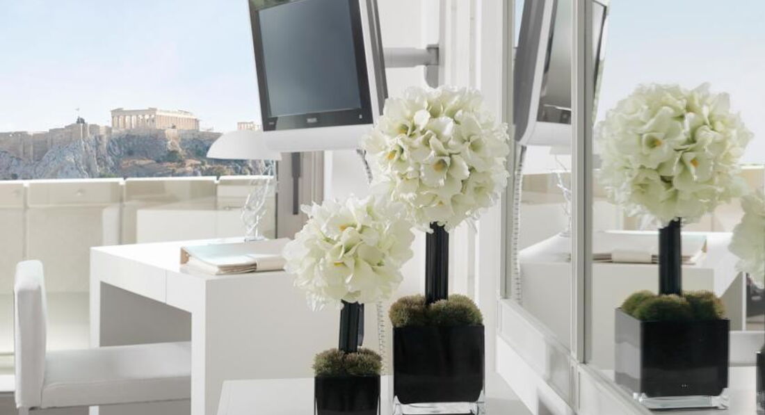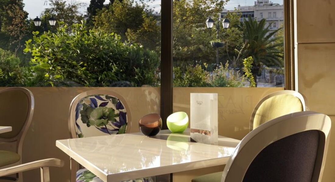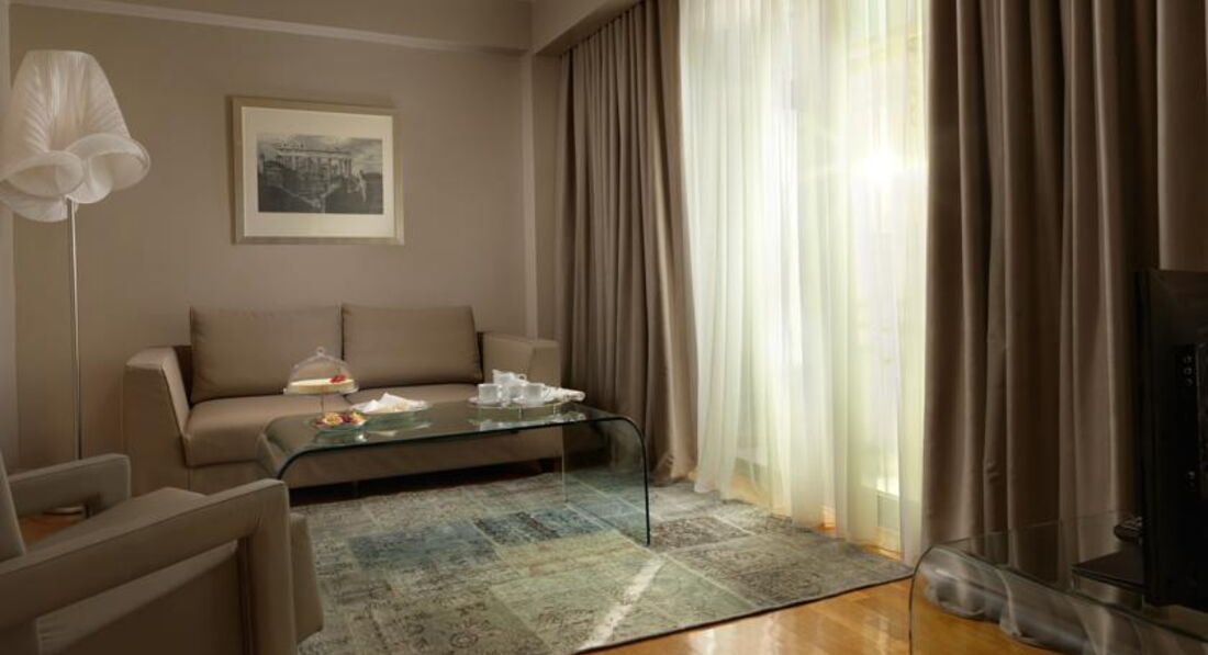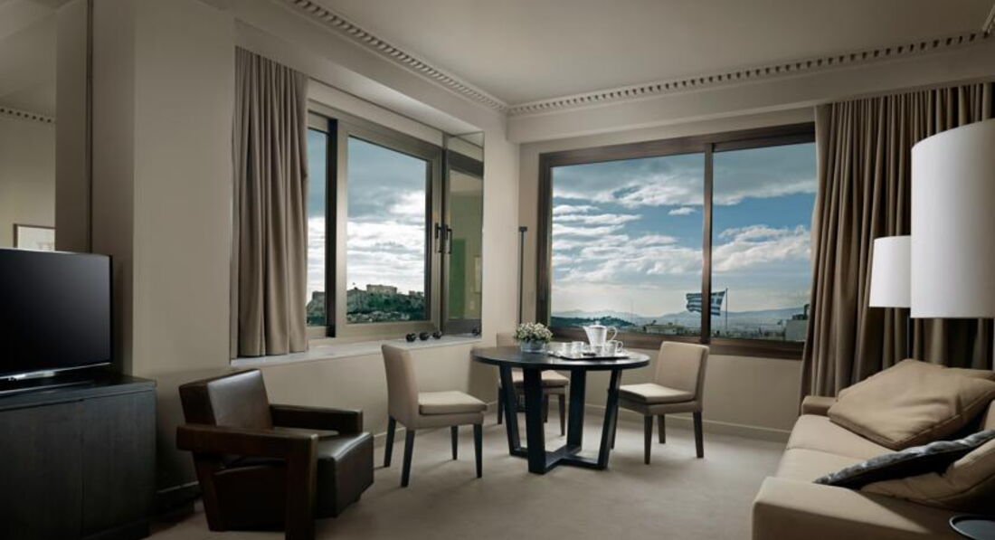 Просторі номери елегантно оформлені у класичному стилі з вікнами від підлоги до стелі. Вікна багатьох номерів виходять на площу Синтагму, Акрополь та вулицю Стадіу. Готель Athens Plaza розташований всього за 50 метрів від станції метро Синтагма і за кілька хвилин ходьби від музею Бенакі. Приблизно за 5 хвилин можна дійти до елегантного району Колонакі з бутіками високої моди, ресторанами вишуканої кухні та модними кафе. Підійде для самостійних мандрівників та ділових гостей.