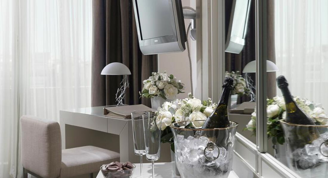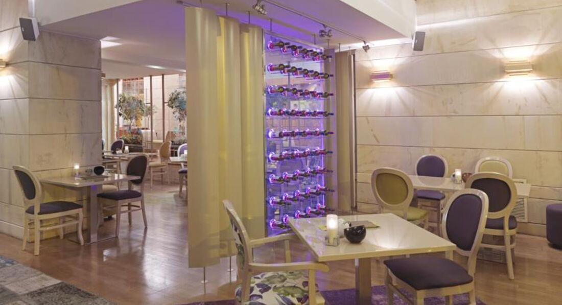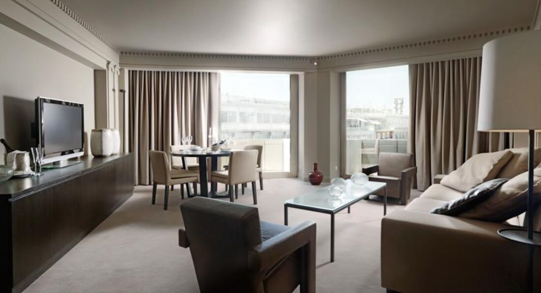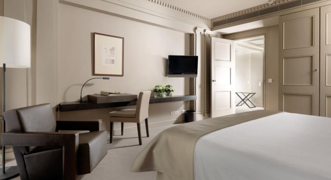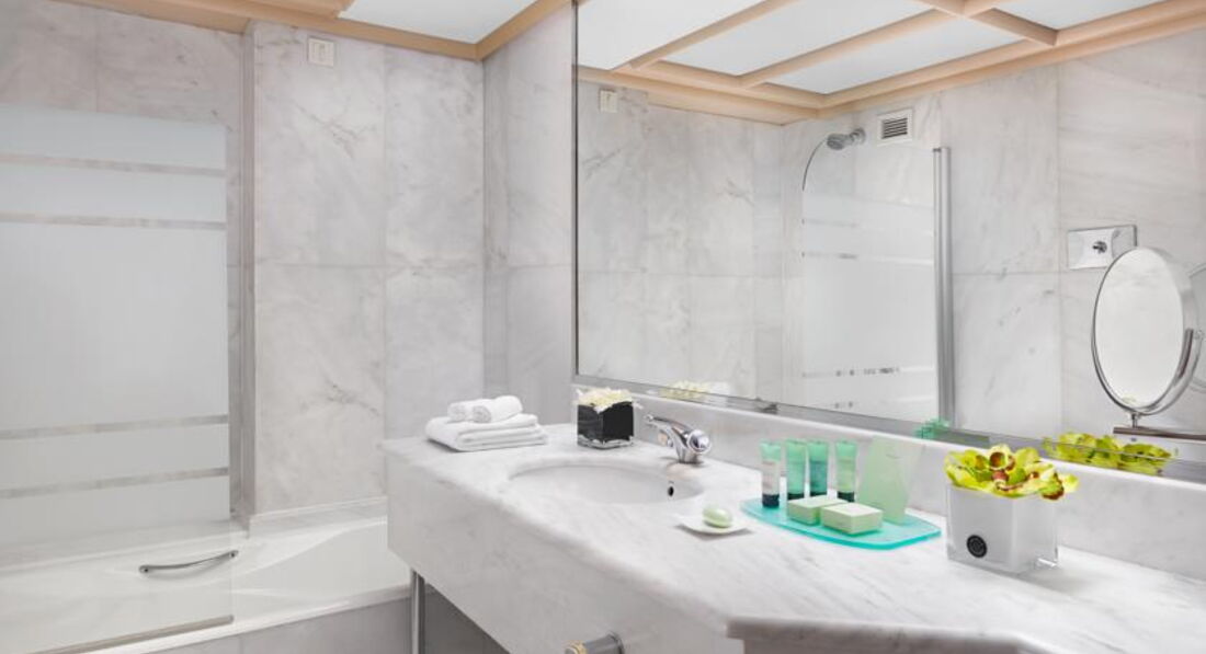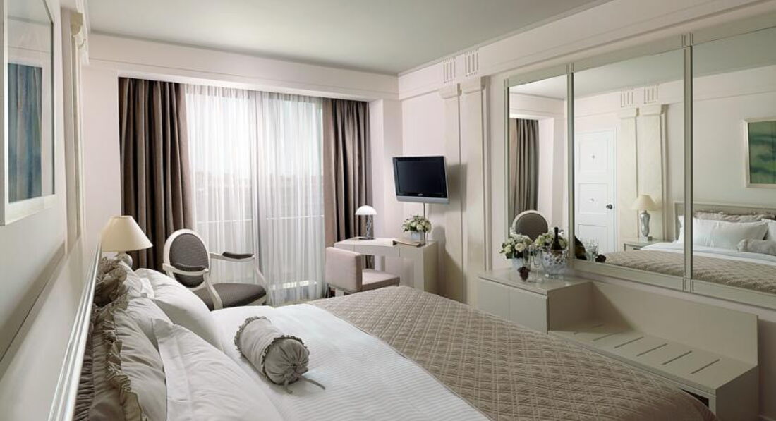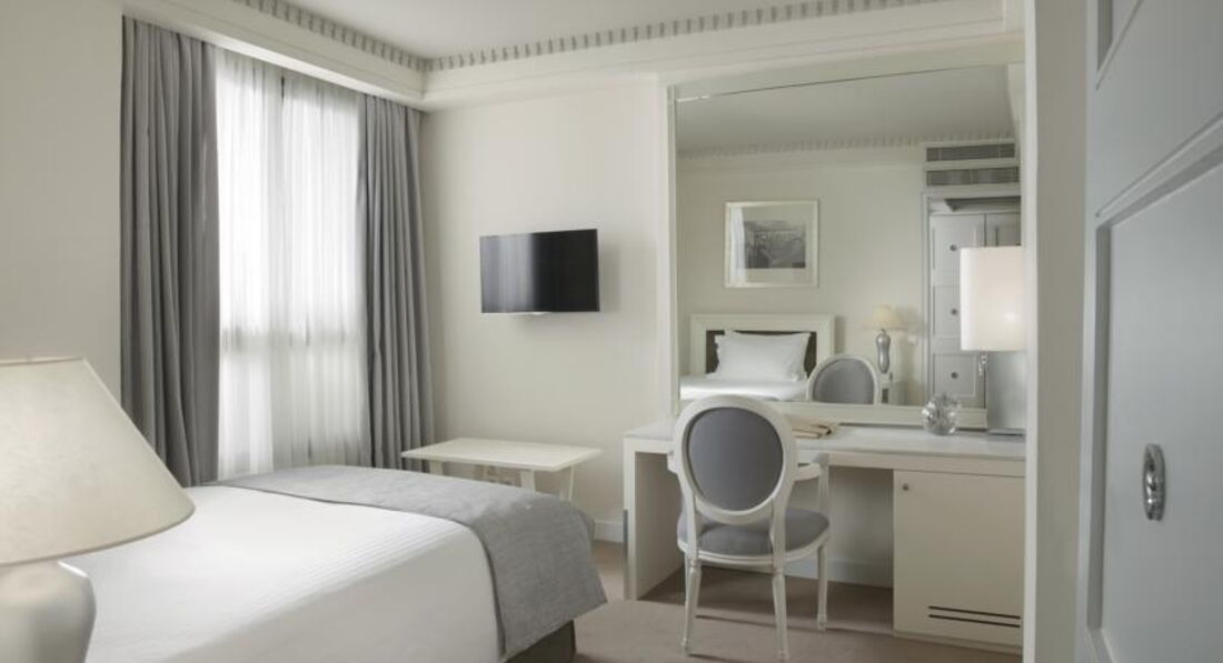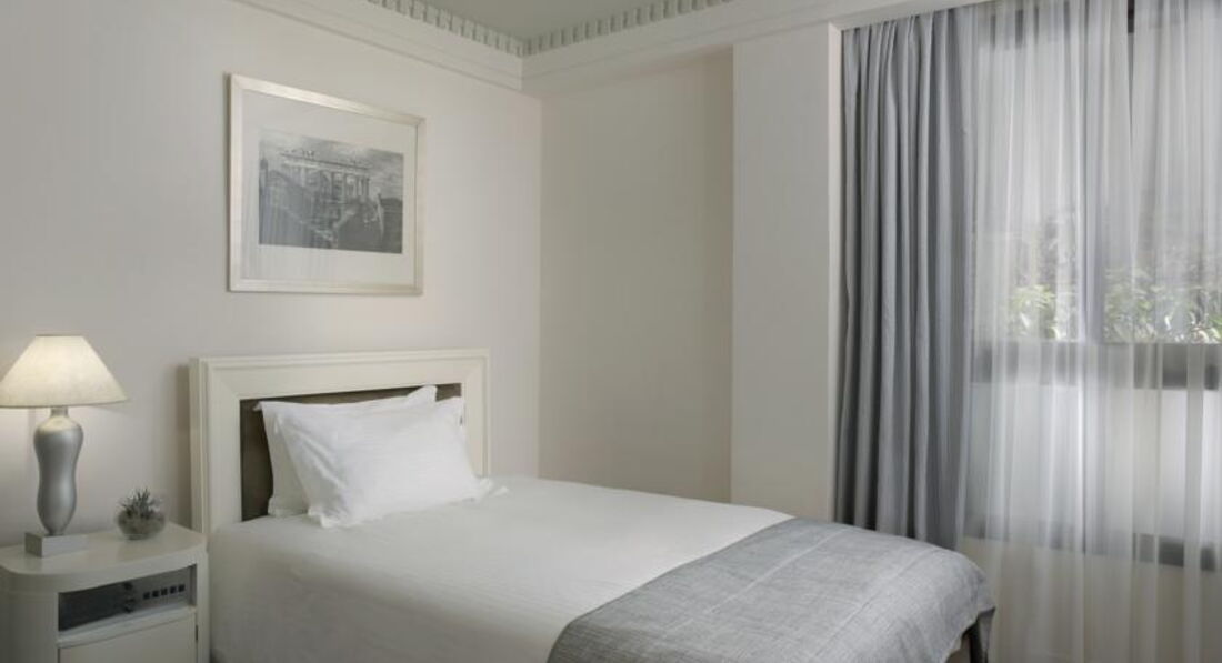 Просторі номери елегантно оформлені у класичному стилі з вікнами від підлоги до стелі. Вікна багатьох номерів виходять на площу Синтагму, Акрополь та вулицю Стадіу. Готель Athens Plaza розташований всього за 50 метрів від станції метро Синтагма і за кілька хвилин ходьби від музею Бенакі. Приблизно за 5 хвилин можна дійти до елегантного району Колонакі з бутіками високої моди, ресторанами вишуканої кухні та модними кафе. Підійде для самостійних мандрівників та ділових гостей.