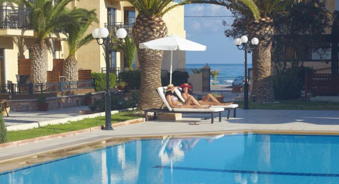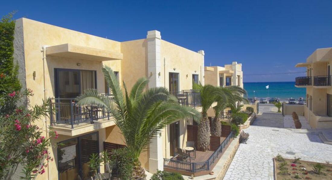 Розташування: за 76 км від м. Іракліон, за 65 км від аеропорту м. Ханья, на самому березі моря в м. Ретімно.