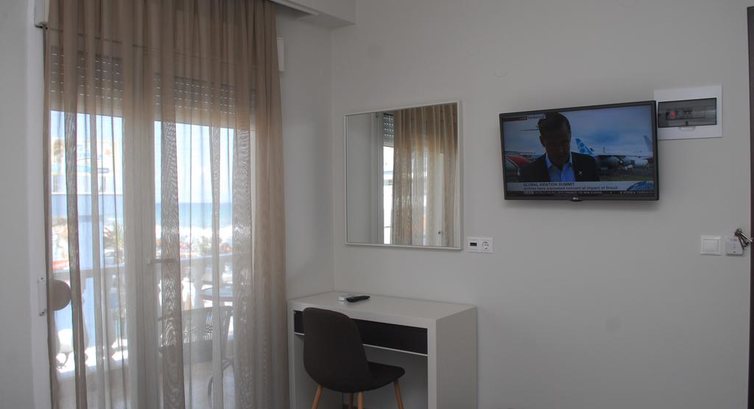 Реновація 2018 року! Оновлено частину номерів - нові типи номерів Singles Renovated, Doubles Renovated, Triples Renovated. Всього 72 номери: Singles Renovated (~15 кв.м), Double Renovated (~18 кв.м), Double Renovated SSV (~18 кв.м), Triples (~20 кв.м), Triples Renovated (~20 кв.м) .м), Quadruples (~22 кв.м), Doubles Premium SV (~18 кв.м). Типи номерів: Singles Renovated Оновлено взимку 2017-2018 років. Двоспальне ліжко. Нові меблі, телевізор з плоским екраном 32 дюйми. Double Renovated Оновлено взимку 2017-2018 років. Двоспальне ліжко або 2 односпальні. Нові меблі, телевізор з плоским екраном 32 дюйми. Triples Renovated Оновлено взимку 2017-2018 років. 3 односпальні ліжка або двоспальне ліжко та односпальне. Нові меблі, телевізор з плоским екраном 32 дюйми. Double Двоспальне ліжко або 2 односпальні. Triple 3 односпальні ліжка. Quadruple Двоспальне ліжко та 2 односпальні Або 4 односпальні ліжка. Doubles Premium SV Повністю оновлено в 2016 р. Нові меблі, телевізор з плоским екраном 32 дюйми. Вид на море. Тип додаткового ліжка – стандартне/розкладне.У номері: Балкон/тераса Душ Кондиціонер Супутникове ТВ ТБ Телефон Фен на запит Холодильник