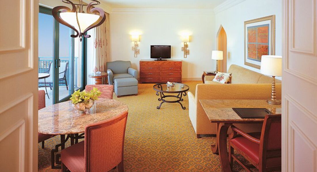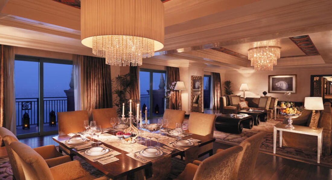 В готелі: ВХОДИТЬ У ГРУПУ ГОТЕЛІВ KERZNER INTERNATIONAL RESORTS Відкритий у 2008 році. У готелі 1539 номерів, включаючи один люкс Bridge Suite , розташований над аркою, що з'єднує Східну та Західну вежі готелю. 324 Deluxe Room (45-47 м2, частковий вид на море або острів Пальма, ліжко king size або twin, балкон, макс. 2+2 або 3 чол.) 451 Ocean Deluxe (45-47 м2, вид на море, ліжко king size або twin, балкон, макс. 2+2 або 3 чол.) 402 Palm Beach Deluxe (45-47 м2, вид на пляж і острів Пальма, ліжко king size або twin, балкон, макс. 2+2 або 3 чол.) 195 Imperial Club (11–15 поверхи, 45–47 м2, ліжко king size або twin, балкон, макс. 2+2 чи 3 чол., клубні привілеї) 82 1-Bedroom Terrace Club Suite (94 м2, вітальня, спальня з king size, балкон 30 м2, гостьовий туалет, їдальня зона, простора ванна, вид на центральний басейн і пляж, макс. 2+2 або 3 чол., клубні привілеї ) 42 1-Bedroom Executive Club Suite (101 м2, вітальня з просторим балконом, спальня з king size та французьким балконом, гостьовий туалет, столова зона, простора ванна, вид на центральний басейн та пляж, макс. 2+2 або 3 чол., клубні привілеї) 1 Bedroom Regal Club Suite (164 м2, вид на пляж і острів Пальма, вітальня з терасою, їдальня зона, спальня з king size, простора ванна кімната, міні-кухня, макс. 2+2 або 3 чол., клубні привілеї) 2 Bedroom Terrace Club Suite (141 м2, вид на центральний басейн і пляж, 2 спальні (king size та twin queen), вітальня, балкон 30 м2, гостьовий туалет, простора ванна кімната, макс. 6 чол., клубні привілеї) 2 Bedroom Executive Club Suite (148 м2, вид на центральний басейн і пляж, 2 спальні (king size та twin queen), вітальня, французький балкон, гостьовий туалет, простора ванна кімната, макс. 6 чол., клубні привілеї) 2 Bedroom Regal Club Suite (211 м2, фронтальний вид на острів Пальма, простора тераса, вітальня, столова зона, 2 спальні (king size та twin queen), міні-кухня, макс. 6 чол., Клубні привілеї) Poseidon/Neptune Suite (165 м2, кожен з двох номерів розташований на трьох поверхах; верхній поверх – вхід та хол; середній поверх – їдальня та вітальня з кухнею дворецького, з вікон вітальні можна побачити дива підводного світу Ambassador Lagoon та навколишню територію; нижній поверх – головна спальня з ванною, звідки через величезні вікна відкривається панорама підводного світу Ambassador Lagoon; всі три поверхи об'єднані ліфтом; послуги камердинера – 24 години на добу) При заселенні вноситься депозит