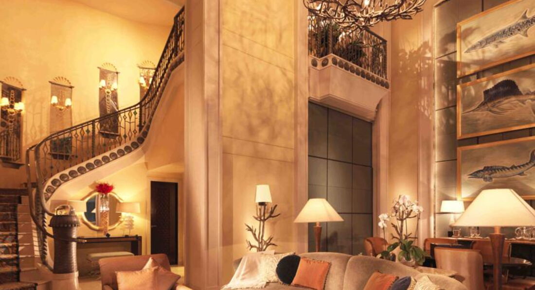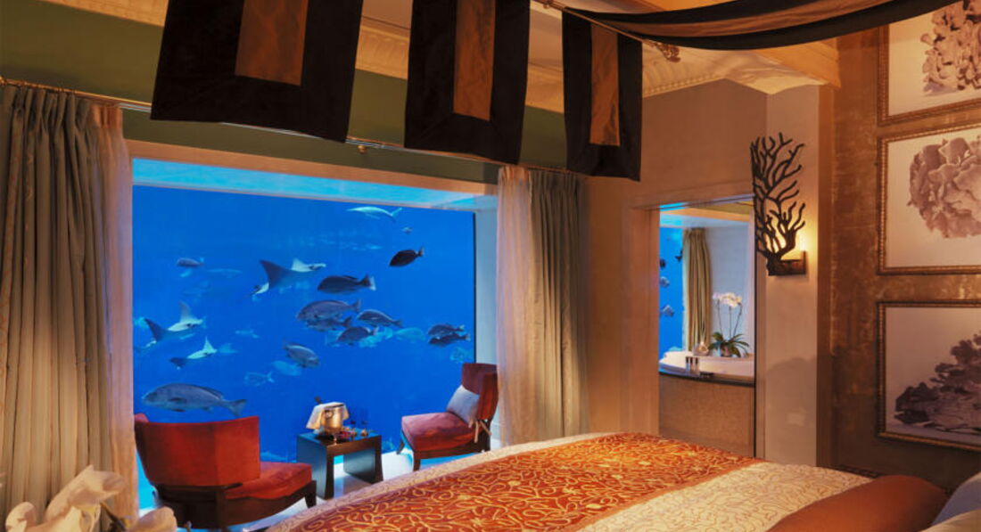 Номер Neptune suite - трехэтажный номер с видом на огромный аквариум, т.е. вместо окон - вид в аквариум Атлантиса. Номер оснащен дубовой мебелью, дорогими аксессуарами и реквизитами. Производи невероятное впечатление!
