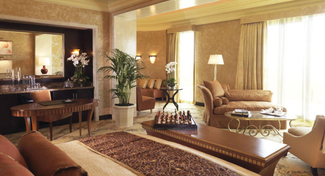 НОМЕРНОЙ ФОНД: очень понравилось, что номера просторные, чистые и роскошные. Интернет, мини-бар, круглосуточное ресторанное обслуживание в номере и кухня на любой вкус. Номера с видом на Персидский залив или Пальмовый остров. В номере: фен, халат и тапочки, утюг, гладильная доска, телевизор, телефон, сейф в номере, кондиционер, ванна, мини-бар, интернет ( платный), набор для приготовления чая/кофе.