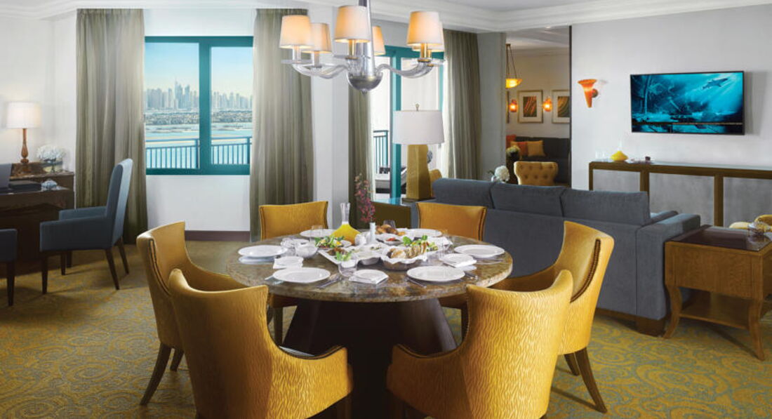 В этом дорогом и знаменитом отеле Дубая удалось отдохнуть прошлой осенью. Предложил путёвку как постоянным клиентам тур оператор Travel Professional Group. По их части - организовано всё классно, претензий нет. Чувствовали себя безопасно в чужой стране, опекают замечательно. Перелёт и трансфер прошли нормально, никаких заминок не возникало. Отдельный гид Анастасия полностью была занята нашим отдыхом от начала и до конца поездки. Отель очень красивый и чистый, как снаружи, так и внутри, выдержан в одном стиле. Персонал подобран идеально - к гостям уважительное отношение, следят за порядком, свои обязанности выполняют отлично и всё делают с улыбкой, приятные и милые люди, как одна большая и дружная семья) За питание, конечно, могу только похвалить и сказать, что всё превосходно - изобилие блюд в каждом из ресторанов, хоть по меню, хоть это шведский стол. Овощи, фрукты спелые, сочные. Мясо и рыба абсолютно свежие, многое готовят просто при вас. Морепродукты - выше всех похвал! Сладости и десерты - вкусные и оставляют лишние кг) Номерной фонд высокого уровня. Номера с новым и современным ремонтом, всё необходимое для полноценного и беззаботного отдыха имеется. Описание в буклетах и на сайтах соответствует. У нас был номер на 3 этаже с балконом. В номере большая кровать с очень удобным матрасом, белоснежным бельём и удобными подушками, вместительные ящики, кондиционер, ТВ, сейф, чайник, фен, утюг и т.д. Аквапарк на территории - с огромным аквариумом, от которого без ума все дети, все чисто,ухоженно, следят за порядком и безопасностью. Много горок и развлечений, всё включено в стоимость, поэтому можно пользоваться без дополнительных плат. Океанариум и дельфинариум - недёшево, но оно того стоит. Мне отель полностью и абсолютно понравился, покидать территорию нет необходимости, всё есть, кормят отлично. Свою стоимость оправдывает. Я рекомендую, этот отель стоит посетить.