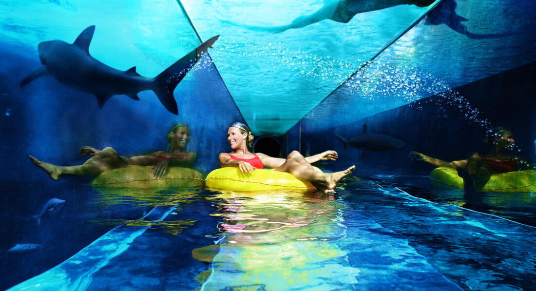 АКВАПАРК: Большой, много разных горок, но также много и народу. На каждую горку по часу в очереди. Можно купить экспресс проход без очереди. Стоит около 90 долларов. С ним дело пойдет веселей. Очень порадовала Горная река. С моими детьми 3 и 5 лет оказался самый лучший аттракцион. Мечтала прокатиться на горке, с которой скатываешься в тоннель в аквариум с акулами. На картинках это конечно впечатляет. По факту простояв час в очереди, пролетев 30 секунд в темой трубе аккуратненько так выплываешь в этот тоннель и тихо тихо плывешь в нем. Вокруг немного рыбок и тех плохо видно.