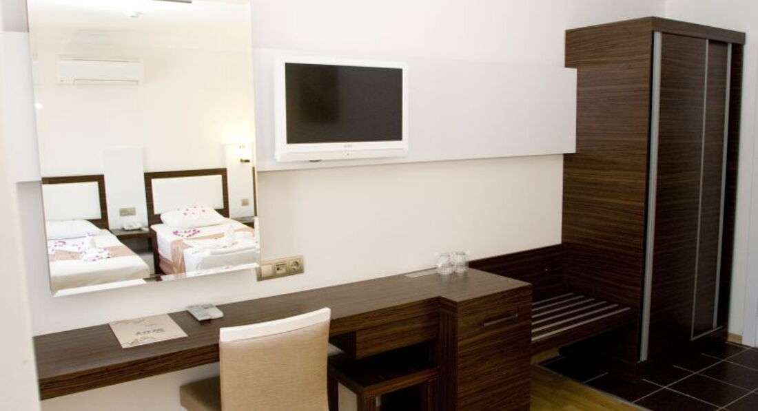 Отдыхала в отеле в июле 2015 года подругами.С первой минуты появления в отеле нас окружили вниманием и заботой.Нас встретил Алмаз,обаятельнейший человек,хорошо говорящий по русски ,профессионал своего дела.Сразу заселили в номер,помогли поднять багаж . Номер 502 с видом на море был очень чистый и уютный.Уборку в номере делали регулярно,каждый день.Персонал очень вежливый и чуткий.При обращении за помощью,сразу реагируют и стараются помочь.У нас в номере не работал пульт от телевизора ,сразу пришли и заменили батарейки. В ресторане всегда разнообразная еда,в достаточном количестве и очень вкусная.Повара стараются всем угодить.Все всегда вкусное и свежее.Много фруктов и всевозможных десертов на любой вкус.Был десерт из тыквы,очень вкусный! Администратор ресторана очень вежливый . Море через подземный переход очень близко,иди всего 1 минуту.Пляж большой,лежаков хватает всем.Вход в море сначала песчаный. а потом каменистый.Лучше сразу плыть ,глубже уже песочек и вода прозрачная.Море удивительно красивое,а небольшие волны только добавляли удовольствия.Аниматор Оля проводила на море зарядку и аквааэробику.огромное ей спасибо,большая умница ,очень пластичная и спортивная. В баре на пляже вкусные гамбургеры и очень вкусные лепешки,спасибо огромное повару который их пек! Анимация для детей очень хорошая,с удовольствием после ужина смотрели как танцуют и поют дети.Для взрослых было караоке,шоу мистер и мисс отель всегда весело и интересно. Особое спасибо за турецкую ночь ,грандиозное зрелище начиная с ажурных арбузов и всевозможной вкусной еды до выступления танцевального коллектива.Все очень колоритно и в духе турции! Аниматоры все молодцы а Ягмур просто красавица! Отель расположен практически в центре поселка Конаклы,поэтому можно прекрасно прогуляться по вечерним улицам,где много магазинчиков и кафешек. Отель соответствует заявленной 4. Практически нет никаких минусов.Спасибо за прекрасный отдых!