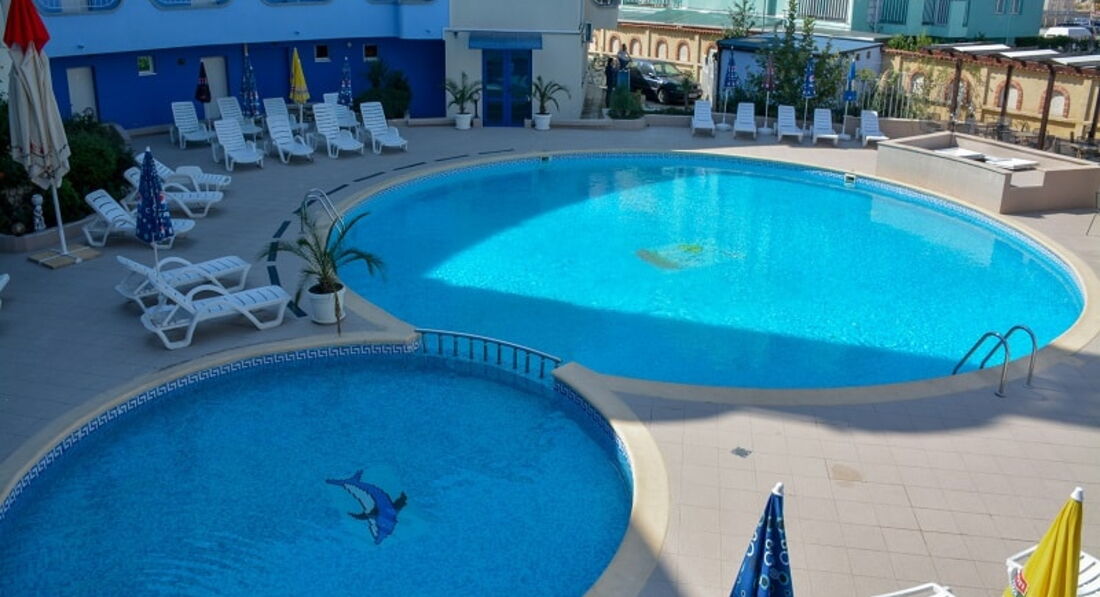 Номер был одноместный на 5 этаже ,очень маленький.Попросила поменять.Двухместный оказался хорошим и с/у побольше.Номера ниже я думаю лучше.Поменяли наверно, потому что народу было очень мало.Из русских только я.Плохо то, что нет лифта.У меня был 5 этаж и после пляжа в жару тяжко подниматься.До моря минут 10.Неплохой бассейн.Чистили каждое утро.Кормили плохо (скудно и невкусно).Мне есть с чем сравнить.Была здесь в других отелях той же категории.В Дунав правда путевка стоила дороже ,а вот в Дельфин (он кстати не далеко) примерно столько же.