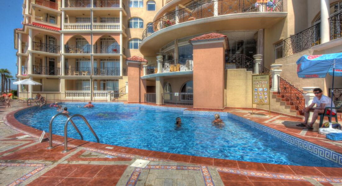 Первый раз отдыхали в Болгарии, да ещё и с ребёнком. Отель искали близко к морю и что бы хоть какие-то развлечения для деток были. Менеджер т-о ТПГ нам сразу предложила этот отель, одним из первых. По отзывам и фотографиям нам все понравилось, цена устроила. Долетели с комфортом, к отелю был трансфер, менеджер постоянно держала нас в курсе всего. Персонал на рецепции внимательный и приятный, заселили сразу. Отель расположен в довольно тихом и уединённом месте, нет лишнего шума, что для отдыха с детьми просто очень подходит. Номер просторный и уютный. Кровать большая, стол, стулья, шкаф. Ванная комната со всем необходимым. Питание - не скажу, что шикарное, но вкусно и есть всегда выбор. Фрукты, овощи, салаты, гарниры, выпечка, мясо, рыба - набор стандартный, но блюда не повторялись практически, было вкусно. Обслуживали нормально. В течении дня можно было кушать мороженное(очень вкусное, кстати). Территория отеля большая, по ней курсирует бесплатный паровозик. Аквапарк неплохой, мы посещали с удовольствием. Вай фай бесплатен только на рецепции, решили вопрос покупкой местной симки. На пляже лежаков много и они бесплатны. Пологий заход в воду. Песочек чистый. Анимация детская в отеле отличная, вечерами весело, днем разные занятия с детьми проводят, рисуют, играют. Мы себя давно так комфортно на отдыхе не чувствовали, как в этом отеле. Свои 4* он оправдывает и соотношению цена-качество отвечает. Рекомендую посетить!