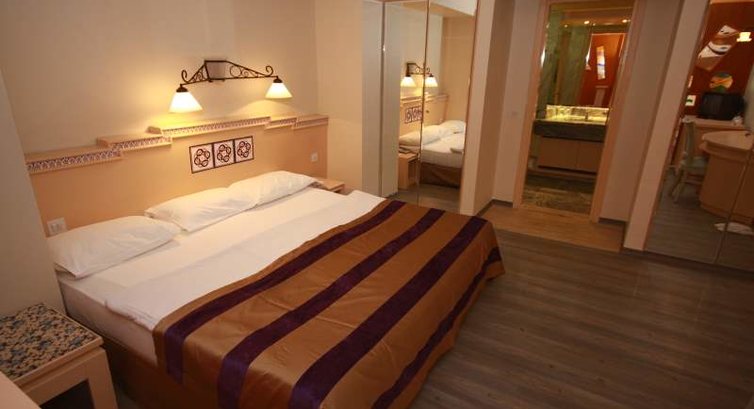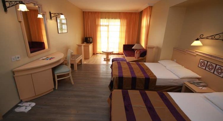 Отдыхал в июне 2011года.Встретили в аэропорту Анталии очень хорошо,до отеля везли на микроавтобусе с кондиционером.Ну а дальше все плохо.Номер дали неподготовленный:все в пыли,на полу грязь,в ванной в мусорном ведре бумажки и Тампакс.Номер поменяли со скандалом на следующее утро.На завтрак очередь за омлетом и вообще за всем.Обед иужин в открытом ресторане,под потолком гнезда птиц,откуда они срут на столы и в тарелки.Из фруктов были арбузы и яблоки.Еда не вкусная,напитки типа Юпи,спиртное-турецкая водка,кислое вино и не вкусное пиво.В номере поменяли белье,когда грязное отнес на рецепшен.Территория большая и зеленая.Пляж большой,но не ухоженный,грибки ржавые,лежаков мало.Одых в этом отеле был испорчен!!!
