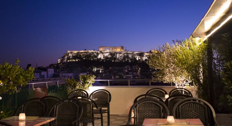 сад на даху готелю з прекрасним видом на Acropolis та Lycavitos;