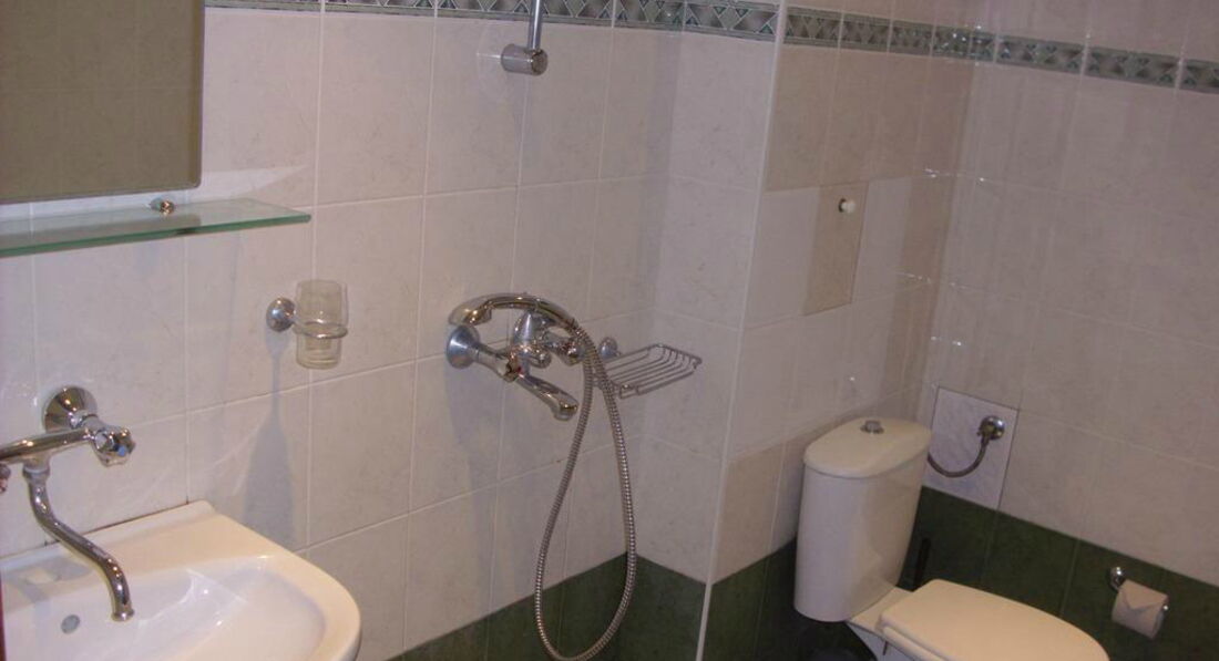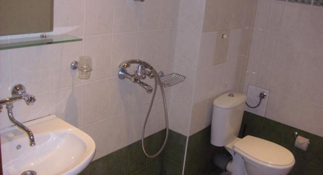 Итак, отель. Два 3-ех этажных корпуса, построенных в стиле болгарских частных домов. Красивые, ухоженные. Территории нет, да она нам и не нужна была. Лифта, кстати, тоже (а жили мы на 3 этаже!), зато есть замечательный менеджер, который согласился поднять наши чемоданы, а в окончании отпуска еще и довезти нас до места сбора на трансфер в аэропорт))) Номера большие, чистые, убираются отлично, за 14 дней нашего пребывания в отеле нам 3 раза меняли полотенца и 2 раза постельное белье. Как по мне, так для 3* просто супер!!! Читала отзывы на других сайтах (правда, уже за пару дней до отлета!), что очень странный санузел, мол, душевая ничем не огорожена, заливается все вокруг. Ну не знаю))) Душ действительно не имеет ни шторки, ни бортика, но нам это вообще не мешало. Пол просыхал очень быстро, после двух девушек через 20 минут уже и следа не было о былой баньке))) Писали, что все время заливало туалетную бумагу)))) Не знаю, что и сказать))) Аккуратней что ли надо быть))) У нас с этим проблем не было!