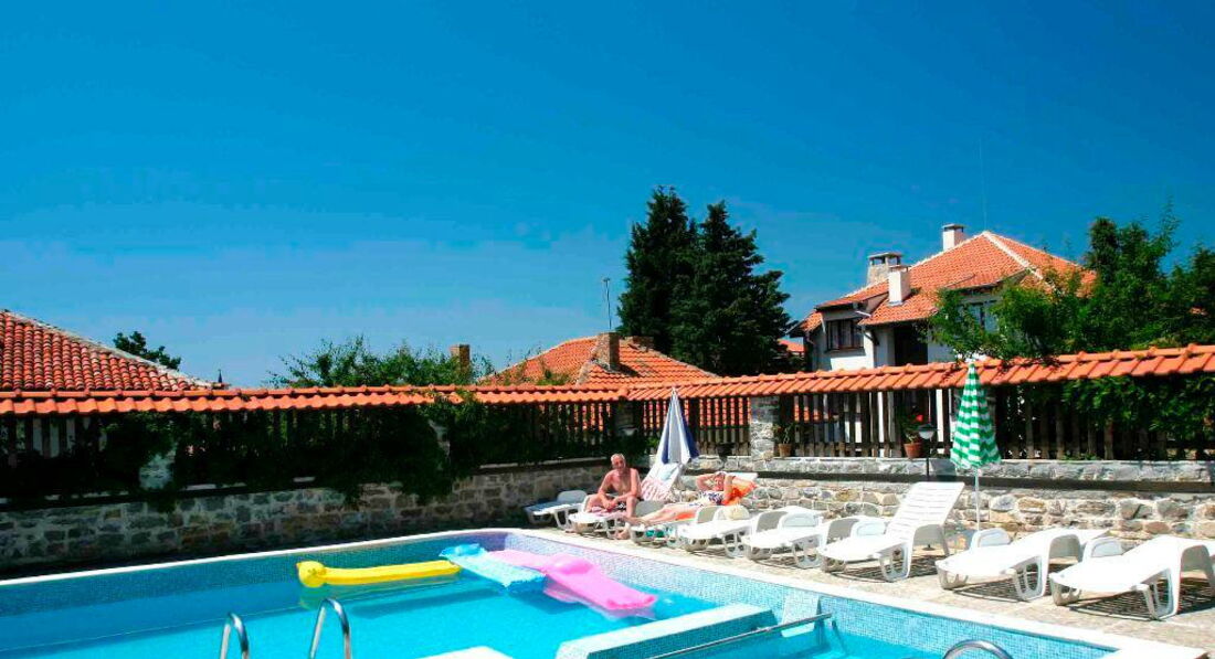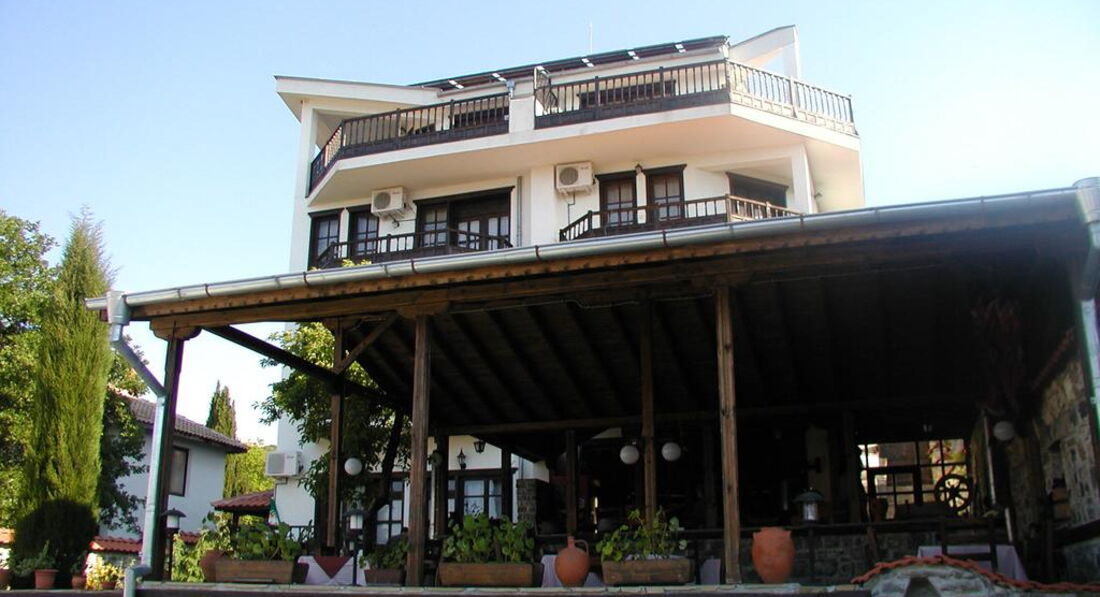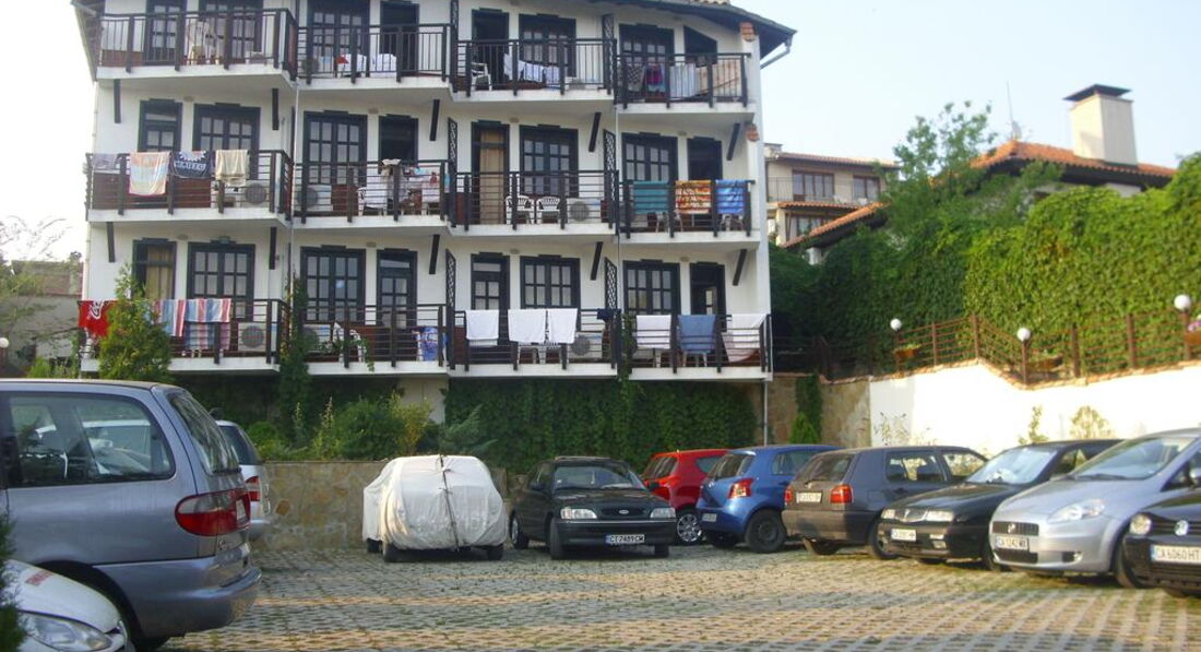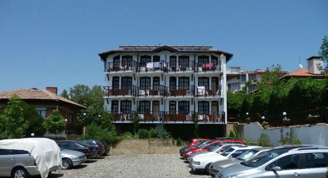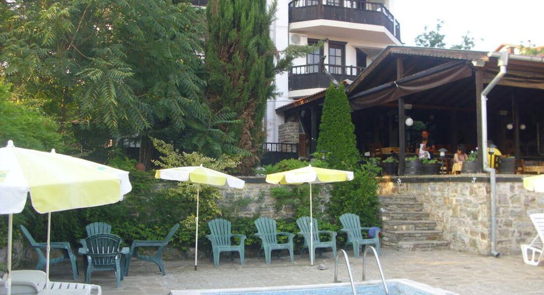 Тем не менее ,отель понравился! В первую очередь своим дизайном (в традиционном болгарском стиле) и расположением - тихое и уютное место на окраине Солнечного берега,до моря очень близко,буквально 10 минут неторопливым шагом!Благодаря тому,что отель расположен в районе дач ,вокруг много зелени,деревьев !Если бы еще не орали истошно чайки,особенно по утрам,было бы совершенно замечательно!