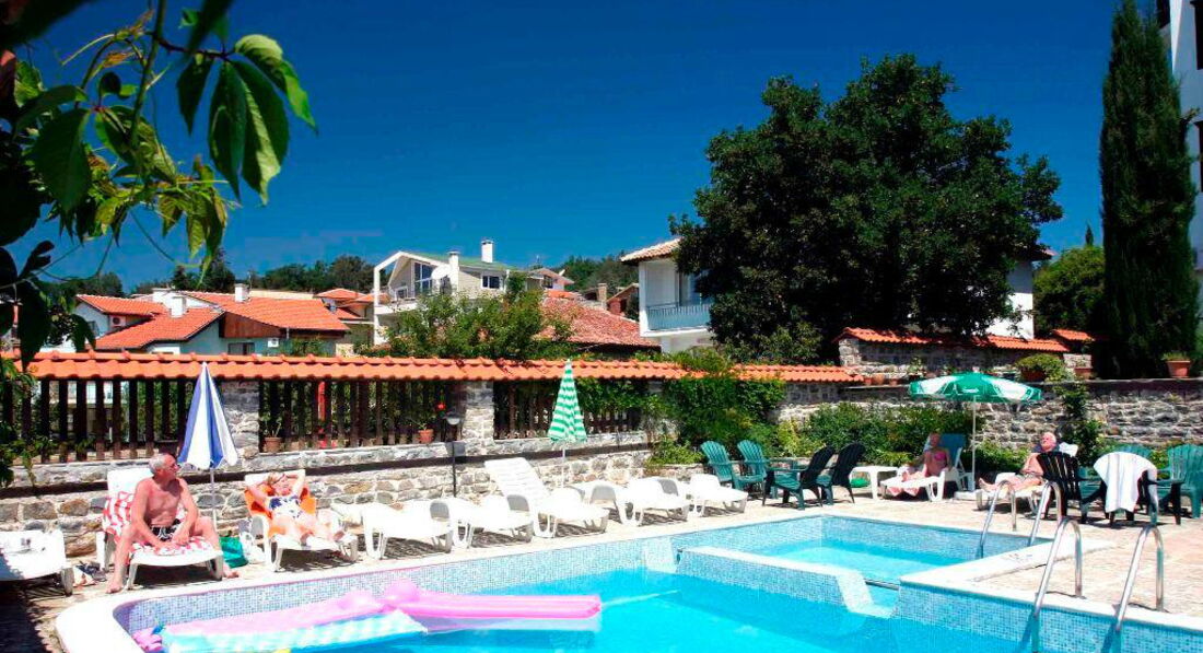 Хороший отель, недалеко от пляжа. Завтраки на мой вкус отличные:колбаса,сосиски,омлет,овощи,фрукты,чай,кофе,молоко,ну и конечно же брынза,очень вкусная.Территория отеля чистая,убираются и меняют полотенца каждый день, постель по запросу.Будете просить,чтоб меняли каждый день,будут менять. Персонал очень добрый и приветливый,заселяют сразу. В общем у нас с мужем только положительные эмоции. Если вы не сидите в номерах,смело в этот отель. Находится на границе со Святым Власом,поэтому говорят по русски все. Кушали в основном в кафе прям на пляже. Там очень приветливый и отлично говорящий по русски администратор и официант. А в принципе еда везде своеобразная,на наш взгляд не айс) Исключение это супермаркет меркурий, там все по-русски.Ездили от анекс тур. Все прошло хорошо и четко!