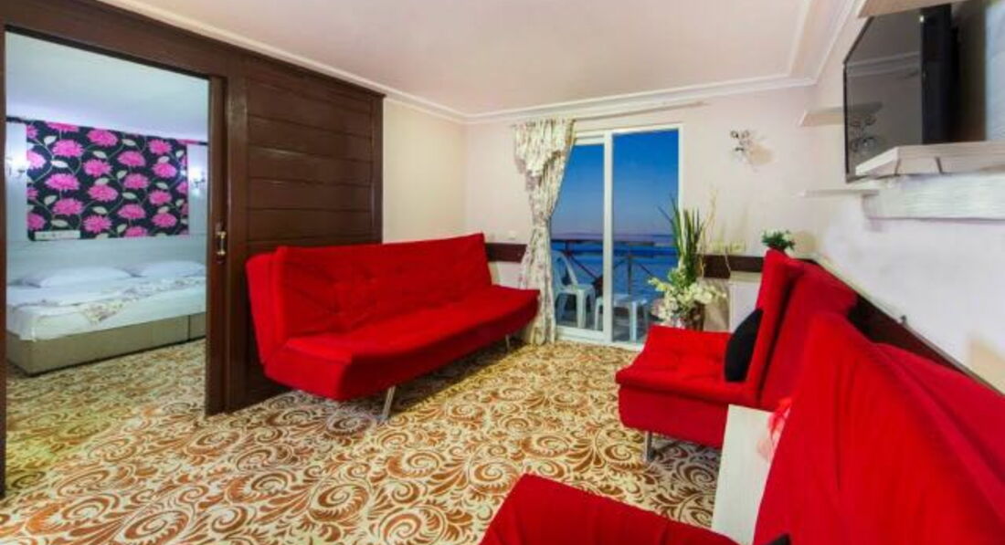 Были в этом отеле с 2-я маленькими детьми. Раньше он назывался First Beach (а еще раньше Mir Club Kizilot 3*) 4*. Он все время переименовывается. В отель мы прибыли в 3 часа дня, но заселили нас только в 6 вечера, по причине отсутствия свободных номером!!! Номер нам предоставили на первом этаже, в котором на полу лежала плитка, а ковриком был устелен только один кусочек возле туалета. Все было грязное, мебель старая. Штора была повешена только одна, вторую вешал муж, чтобы проходящие люди не заглядывали в окна. В шкафу не было вешалок, на потолке огромный грибок, везде ползали насекомые, горячей воды не было и что-то постоянно гудело до такой степени, что невозможно было открыть дверь. Этот номер рассчитан был на 3 человек(хотя нас было четверо!!!), чтобы уладить проблему они принесли младшему ребенку вместо кровати или раскладушки - манеж!!! и вместо одеяла дали полотенце.