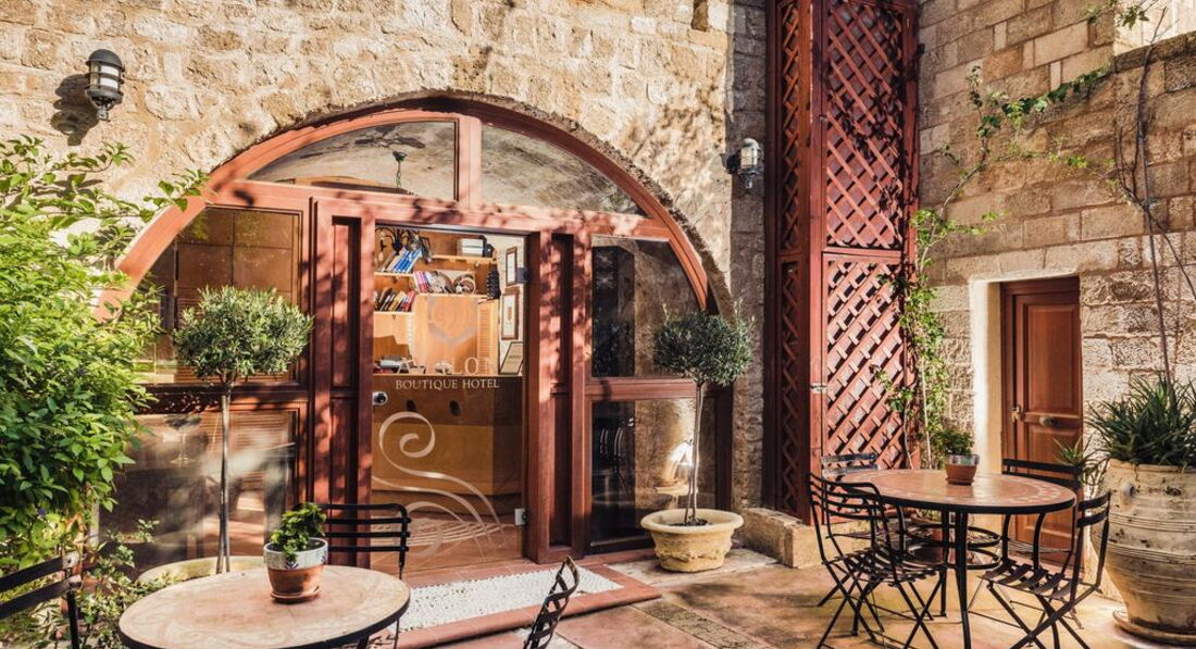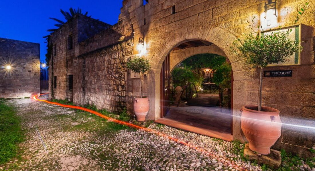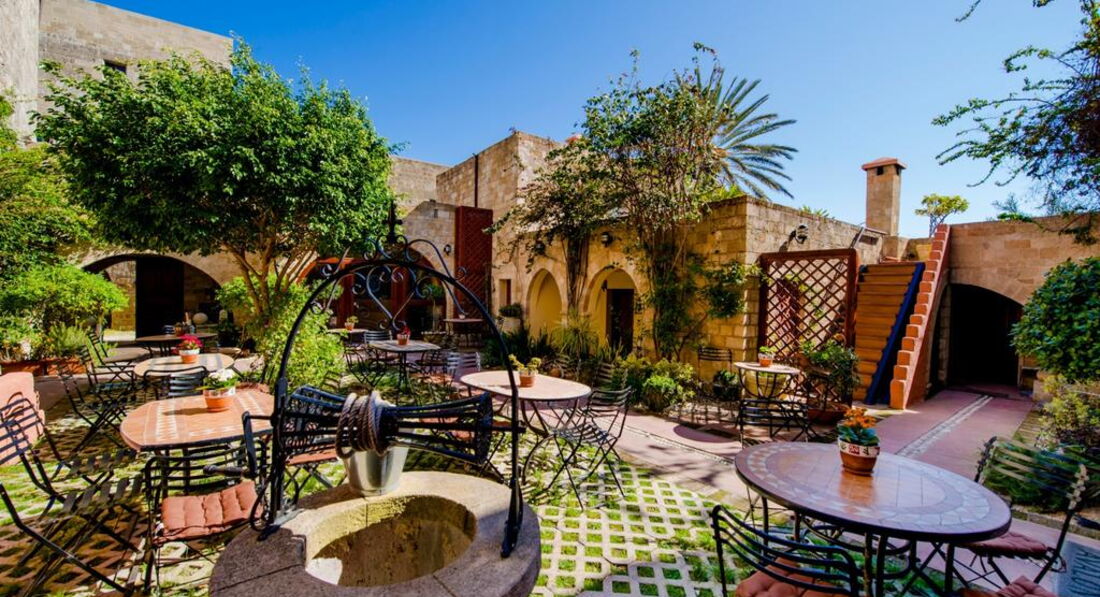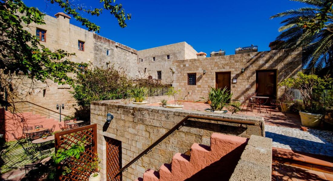 Розташування: Готель розташований в центрі Середньовічного Міста Родосу, поряд з Вулицею Лицарів та палацом Великого Магістра, навпроти готелю Spanish Inn. Історичні визначні пам'ятки, Археологічний та Візантійський музей, мечеть Сулеймана та годинникова вежа знаходяться за 10 хвилин ходьби від готелю, вулиця Сократа та базар – за 5 хвилин ходьби. Нове місто Родос знаходиться за 500 метрів від готелю, порт – за 800 метрів, аеропорт – за 13 км, село Ліндос – за 45 км.