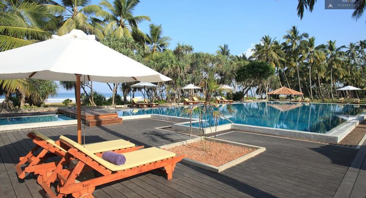 Спокойный отдых в тихом отеле и доброжелательной стране. Удачное пляжное расположение отеля, ухоженная и зелёная территория с присутствием представителей местной земной, воздушной и морской фауны (бурундуки, варан, летучие мыши, крабы), качественная, пусть и немного однообразная еда в ресторане, вежливый персонал позволяют поставить отелю твёрдую хорошую оценку и спустя месяц вновь поблагодарить сотрудников ООО «Юнитурс» Ирину и Юлю за удачное предложение места проведения моего отдыха. Коротко о поездке. Перелёт Эмиратскими авиалиниями (туда и обратно) – «отлично». Даже с неправильно написанной фамилией в электронном билете я и мой багаж были доставлены точно по расписанию в пункты назначения, сбор при вылете из Шри-Ланки не взимался; сервис и питание в самолёте достойные. Трансфер и размещение в отеле - «хорошо». Наша прилетевшая группа была встречена гидом Маньчжуром (общительный, доброжелательный человек, неплохо говорит по-русски) и без задержек (транспортных заторов из-за выходного дня удалось избежать) доставлена в отели по графику доставки. Время в пути – около трех часов. По дороге Маньчжур рассказал много интересного о стране, экскурсионных турах, особенностях отдыха на острове. С размещением вышел небольшой конфуз: сначала меня разместили в номере на первом этаже, без вида на океан, но: за плату менять номер отказались, предложив подождать до следующего дня; ранним утром, что особенно важно после приезда, несмотря на наличие рядом с номером технических помещений, персонал работал практически бесшумно; предоставленный на другой день без напоминаний номер был существенно лучше (третий этаж, прекрасный вид на побережье, отель и океан); в качестве компенсации за временные неудобства в номер принесли корзину с фруктами. Отель – «хорошо». Территория небольшая, но уютная и аккуратная. Всё чистенько, скромно и радует глаз человека, уставшего от бешеных ритмов современного города. Минус один бал за шум железной дороги (что немного мешает утреннему сну), проходящей за отелем, присутствие днём рядом с бассейном надоедливых «бич-боев» , формально не заходящих на территорию отеля (строжайше запрещено), но реально напрягающих своими зазывными предложениями дружить, общаться и т.д., т.е. желающих подзаработать на «свежем» туристе. Впрочем, это характерно не только для Шри-Ланки. Бассейн в отеле один, удобный и с подсветкой. Кстати, во время редкого вечернего купания в нём, где-то с 18 до 18.30, никто не стоял «над душой» и тем более «вежливо» не поторапливал завершить купание. Архитектурный стиль отеля необычный, заметна рука мастера, уважающего художественные традиции своего народа. Перед рецепшеном искусственный пруд-бассейн с красивыми рыбами, которых приятно вечерком покормить прямо из руки (корм без проблем можно попросить у портье). Да, обязательно пользуйтесь вечером и перед сном средством от комаров и москитов. На территории отеля имеется центр аюрведы (спа-процедуры: массаж, грязевые маски, травяные ванны), который я не посещал и не оцениваю. Номер – хорошо с минусом. Чисто, убирают каждый день, чаевые особо не просят – сам оставлял по 100 рупий (чуть меньше доллара) через день. Зато очень приятно после пляжа увидеть на свежей простыне постели незатейливый узор из лепестков экзотических ланкийских цветочков). Телевизора, хо