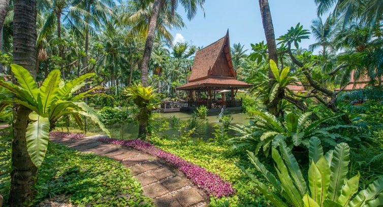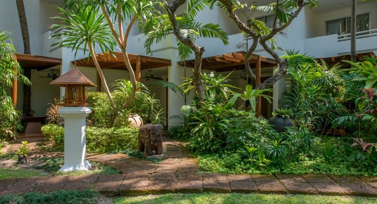 Проснувшись и выйдя на балкон, который почти полностью закрывал от посторонних глаз огромный пальмовый лист, я на время потеряла контроль над собой. Такого восхитительного сада я еще никогда не видела!!! Ландшафтному дизайнеру низкий поклон и несмолкающие аплодисменты. А какой великолепный бассейн!!! Цвет плитки не голубой, как везде, а цвета морской волны, большущие каменные рыбы, фонтанчики-джакузи, а лежаки расставлены как в театре (есть свой партер, амфитеатр, балкон…). Все тебе улыбаются, кланяются, сложив ручки, и мяучат свое тайское «привет».