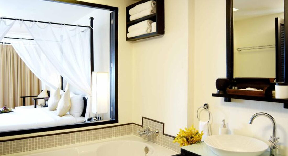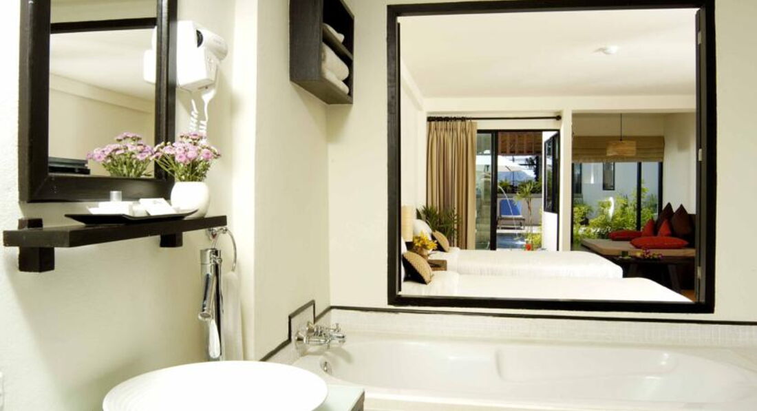 Привлек отель своим внешним видом с улицы - аккуратненький, ухожененький, светлый и подъезд в горку, из-за наличия подземной парковки. Зайдя внутрь были встречены приветливым и внимательным персоналом, сказали им наши пожелания, узнали цены. Цены выше чем в интернете, это практически по везде, в тайланде отели дешевле проплачивать через интеренет. Нам даже предложили пройти в интеренет-кафе и сделать заказ от туда! но мы, будучи смущены ситуацией в которой оказались, оплатили 2-е суток так, и только уже потом разобрались что и как нам лучше делать. Номер с 2-й кроватью пришлось чуток подождать - только что съехали постояльцы, его убирали, а на первом этаже с выходом к бассейну я отказалась, ввиду безопасности.