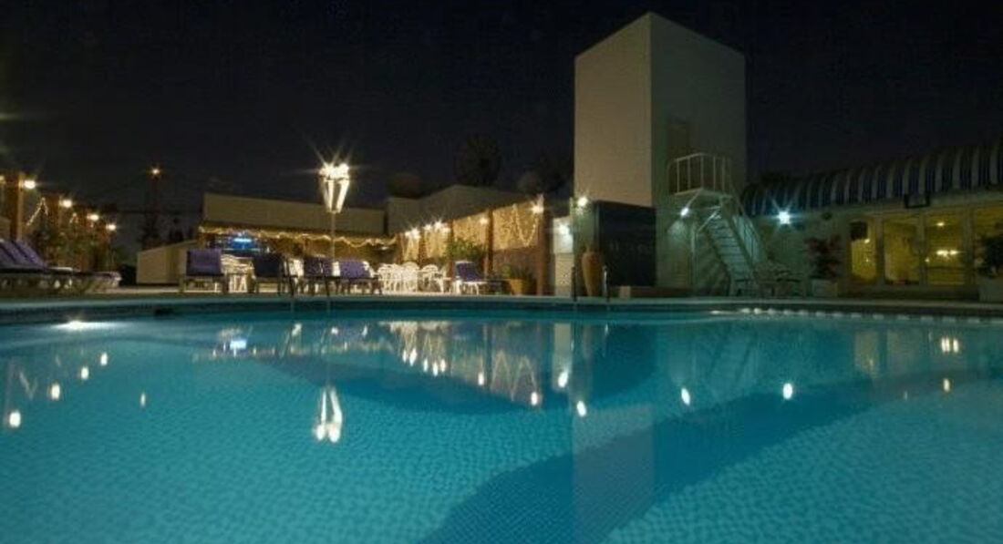 Бассейн на крыше, ничего особенного, небольшой, но освежиться можно. Вида шикарного нет, только ночью, когда светятся и мигают огонечки. Зато мы устраивали вечеринки у бассейна, так как балкона в номере не было.