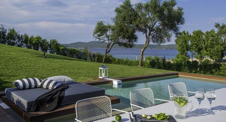• Luxury suite (для 6 чол.), площею 120 кв.м., з приватним басейном, складається з 2 спалень, 2 ванних кімнат, вітальні, кухні та їдальні