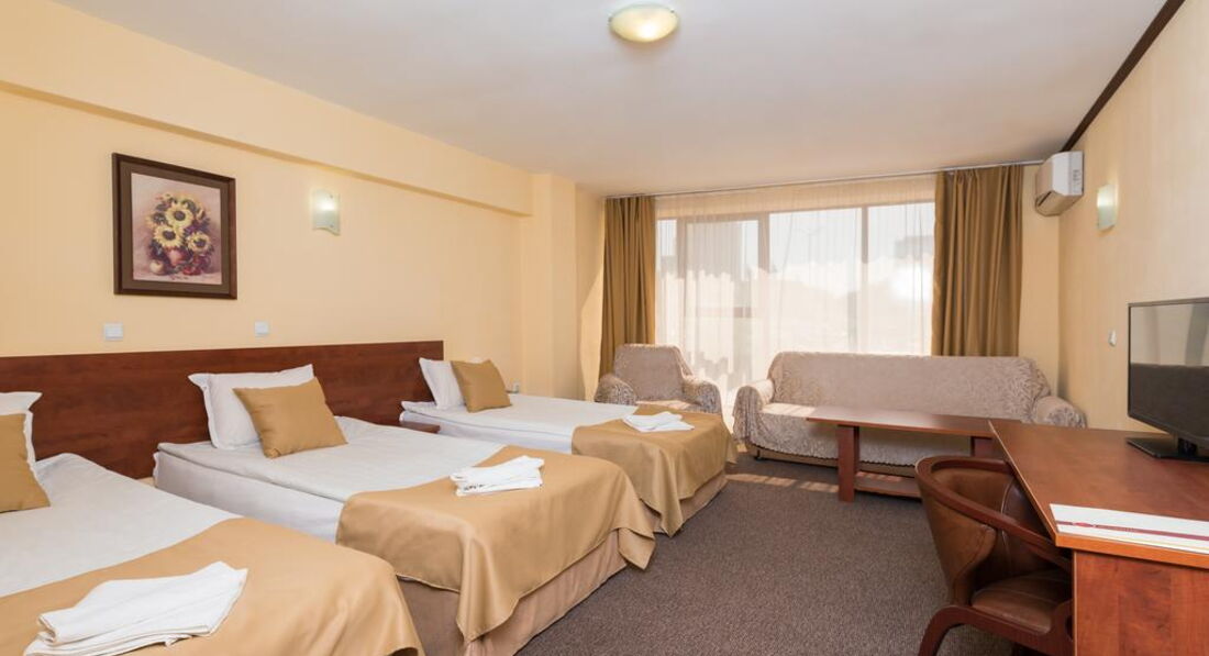 • Triple Room - просторі номери, обладнані 3 ліжками, диваном, кріслами та столом.