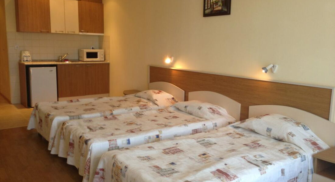 Розташування: 200 м від пляжу і 150 м від центру курорту (готель Kuban), найближчий аеропорт Бургас.