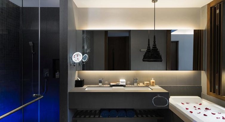 Честно сказать, только переступив порог данного отеля, сразу поняли , что ошиблись в выборе. Выбирали по набору услуг в отеле, картинкам и восхищенным отзывам. Реально, отель, конечно не 5*, а четыре. Теперь только факты и никаких эмоций. 1. Общее пространство отеля: весьма не комфортная планировка всего. Мы жили там 3 дня и так и не смогли с первого раза выйти к лобби даже на третий день пребывания. Система серых, темных, глухих коридоров-колодцев и лестниц. Никакой травинки, зеленинки внутри бетонных котокомб нет и в помине. Это удручает. Зеркальная композиция при входе в отель – вершины безвкусия и дешевизны исполнения. Вообще весь отель смотрится очень дешево и как-то некомфортно. 2. Номер: у нас был клубный номер 807. Ну, что сказать… В ванной моющие разливают по керамическим дозаторам, качество весьма посредственное, запах ужасный. Крема для тела, лосьена – нет. Полотенца белые тоненькие и уже потасканные (хотя отелю 1,5 года). Смесители в раковине и ванной смотрятся красиво, но пользоваться не реально. Брызги от них во все стороны, т.е. вся поверхность перед умывальником будет , как одна большая лужа. Пришлось, когда умываешься, все убирать вокруг. Крепление туалетной бумаги – вершина инженерной мысли китайского производства. Короче, отмотать туалетной бумаги вы не сможете, т.к. пластины-распорки напрочь блокируют возможность прокрутки рулона. Это надо видеть!!! Ванная комната, как и все в отеле, вычурно, безвкусно и глупо спроектированный элемент. В комнате отмечу хороший матрас и подушки на кровати, при дешевом и застиранном постельном белье. Перед сном в комнату приносили две микроскопические печеньки на тарелке под пленкой. L(((( Что это?! Вид с балкона (комната 807) был у нас на холм с проплешиной посредине, на которой всегда лежали грелись бродячие собаки. Перед балконом, в одном уровне двухметровая бетонная площадка с приклеенной серпянкой. Видимо, что-то планировали делать, но решили, что и так сойдет. Хотя бы цветы в вазонах поставили на эту площадку или зеленую пластиковую травку раскатали. А так вид, как на стройке. Уборка в номере – средне. Стены заляпаны, кафель в декоративных вставках в пыльных налетах и размазанной грязи. Причем все это оттирается, я пробовал. 3.Столовая: внешне вроде нормально, но… На столах не везде есть соль и перец, мы сели и у нас не было, пришлось искать по соседним столам. Приборы и посуда – хорошие. В ассортименте из мясного только бекон, химические куриные сосиски и соевая ветчина, еще есть жареная лапша со свиным фаршем тушеная в сплошном чили-соусе (это есть нельзя!). Из еды это все, не считая немного овощей, яиц и горячей воды с рисом. Да, для отеля 3* это нормально, но для 5* позиционирующим себя, как люкс-отель, Вы меня извините. Но самое главное, если в 08.00 утра бекон еще можно застать, то после 09.00 часов (завтрак до 11.00 час.) бекона уже нет. Если и принесут одно блюдце, то его разметут в минуты и опять ничего нет, причем и не несут. Акцент на бекон, потому что больше из мясного для европейцев есть нечего (см. выше). На второй день пришли в столовую в 09.30 час., народу море, все ходят кругами, а взять то нечего… Хоть у нас и клубный номер, но отдельного ресторана для этих номеров, как в других отелях (Dusit, Le Meridien) здесь нет. Оценка завтракам – 2 балла. 4. Клубный час: в клубном лаунже предлагают только несколько коктейлей по меню 