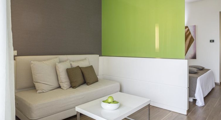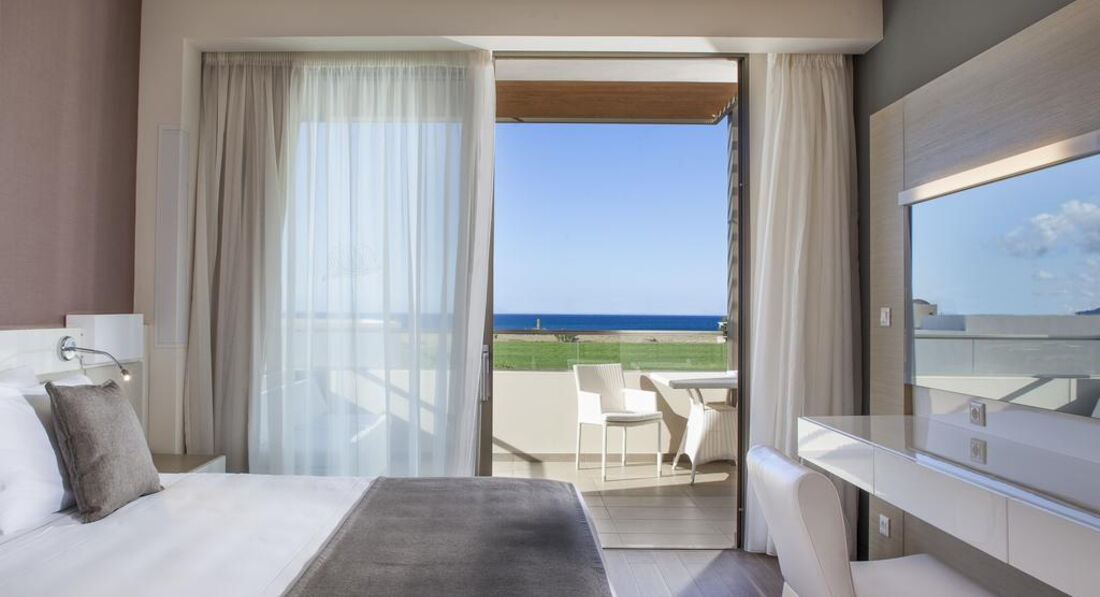 deluxe room sea view (з видом на море, осн.ліжко - двоспальне (2 односпальні за запитом), дод. - диван-ліжко, макс. 3 чол., 32 м2);