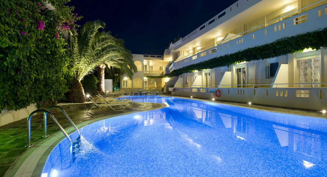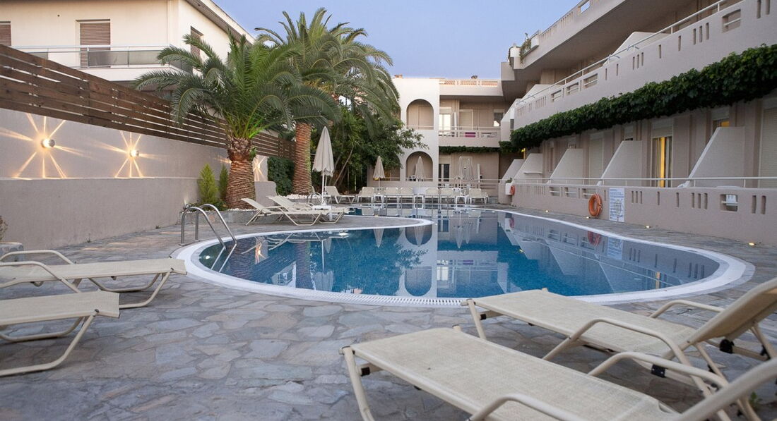 Затишний готель поблизу Ретімно. Нещодавно відремонтовані номери з приємним декором є номери з обладнаною кухнею. Близьке розташування пляжу. Поруч багато ресторанів, барів, магазинів. Привітний персонал, доброзичлива атмосфера. Рекомендуємо для сімейного відпочинку людей різного віку. Побудований у 1989 році, реновований у 2009 році.