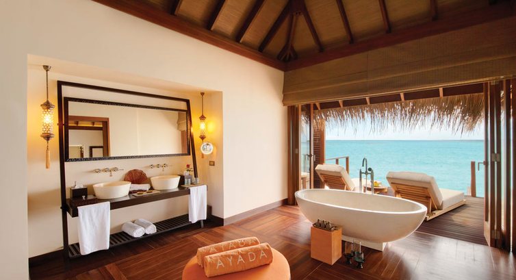Типи номерів: 33 Beach Villa (103 м², макс. 3 або 3+1 infant). Вілли розташовані на пляжі. Спальня, ванна кімната, веранда, невеликий садок та басейн. 33 Ocean Villa (108 м², макс. 3 або 3+1 infant). Вілли на палях у воді. Складаються зі спальні, ванної кімнати, веранди, басейну. Є гамак. При розміщенні з дітьми до 13 років батьки мають підписати спеціальний документ Liability Form. 4 Beach Suite (115 м², макс. 3 або 3+1 infant). Номери з прямим виходом до пляжу. Складаються з великої спальні, міні-вітальні або зони відпочинку, ванної кімнати, веранди, невеликого садка та басейну. Номери можуть бути з'єднані з Beach Villa (через внутрішні суміжні двері). 14 Sunset Beach Suite (137 м², макс. 4 або 3+1 чол.). Вілли з прямим виходом до пляжу. Складаються з великої спальні, міні-вітальні або зони відпочинку, ванної кімнати, веранди, невеликого садка та басейну. 11 Sunset Lagoon Suite (156 м², макс. 4 або 3+1 чол.). Вілли, розташовані частково на пляжі, частково на палях у лагуні. Складаються зі спальні, ванної кімнати, міні-вітальні або зони відпочинку, веранди, басейну. Є гамак, вітальня на відкритому повітрі з прямим виходом у воду. При розміщенні з дітьми до 13 років батьки мають підписати спеціальний документ Liability Form. 14 Sunset Ocean Suite (172 м², макс. 4 або 2+2+1 infant). Водяні вілли. Складаються з окремої вітальні, спальні, 2 ванних кімнат, веранди, тераси, невеликої кухонної зони. Є басейн, гамак та прямий спуск у воду. При розміщенні з дітьми до 13 років батьки мають підписати спеціальний документ Liability Form. 2 Family Ocean Suite (172 м², макс. 4 або 2+2+1 infant). Водяні вілли, аналогічні категорії Sunset Ocean Suite, але замість вітальні мають другу спальню. При розміщенні з дітьми до 13 років батьки мають підписати спеціальний документ Liability Form. 1 Ayada Royal Ocean Suite (318 м², макс. 5 або 4+1 чол.). Двоповерхова водна вілла, що окремо стоїть. Складається з двох спалень, що знаходяться на різних поверхах, та двох ванних кімнат. Простора зона вітальні, балкон на другому поверсі, веранда з шезлонгами та невеликим диваном для відпочинку. Є тераса з гамаками та прямим спуском у воду. При розміщенні з дітьми віком до 13 років батьки мають підписати спеціальний документ «Liability Form».У номері: • набір для приготування чаю/кави • сейф • кавоварка (для еспресо) • кондиціонер • room service: цілодобово • послуги батлера (24 години) • iPod (док-станція) • банні приналежності • басейн • CD/DVD-програвач (з колекцією DVD-дисків) • телефон • прибирання номера: щоденно • фен • тераса • міні-бар (платно, у т.ч. винна колекція) • душ (зливовий) • Wi-Fi (безкоштовно) • стельовий вентилятор • телевізор: LCD (з об'ємним звуком)