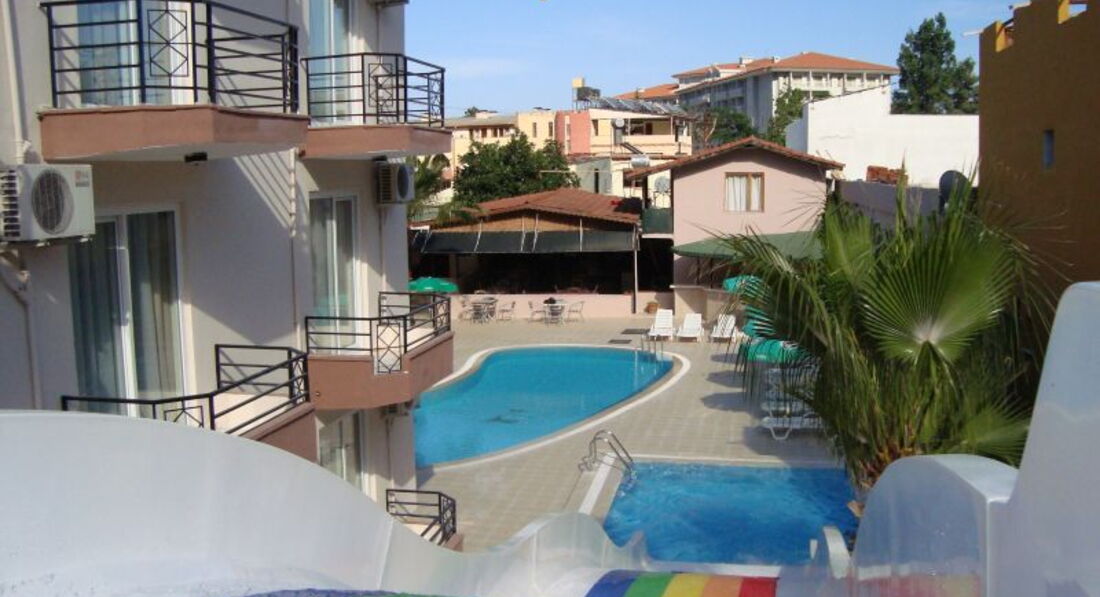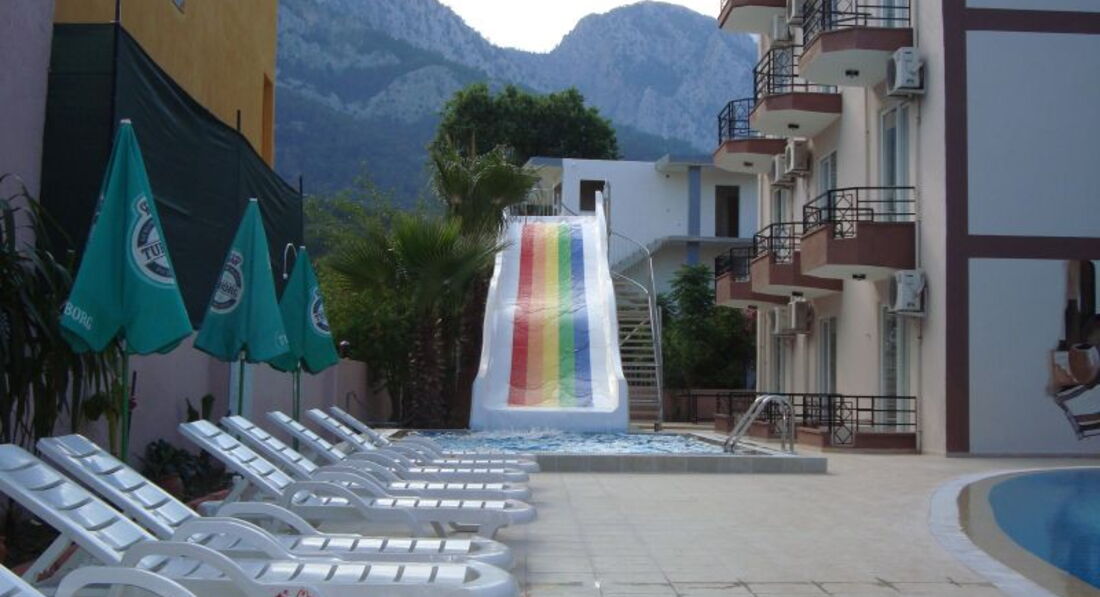 Бассейн чистили каждый день, на лежаках непредполагалось матрацов!!!! очень не удобно!!! На горке нужно быть аккуратным, персонал ен следит когда включается горка, отдыхающие сами контролируют процесс, но всё равно не возможно уследеть. Пляж ОТДЕЛЬНАЯ ИСТОРИЯ! Идти до него можно криво , а можно через территорию двух отелей, очень маленький пляж на три отеля с одной стороны ограничен частным пляжем, куда особо не пускали и с другой стороны парковкой для катеров и вытекающей речушкой. Купаться было не приятно, но есть пантон, берег крупная галька!!! Но есть в двадцати минутах ходьбы от отеля в начале деревни Бельдиби, дикий пляж песочный, туда и бегали загорать, купаться. Природа замечательная и красивая, горы прмо рядом.