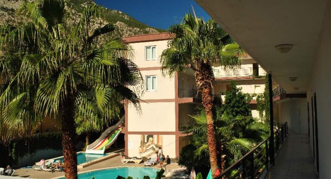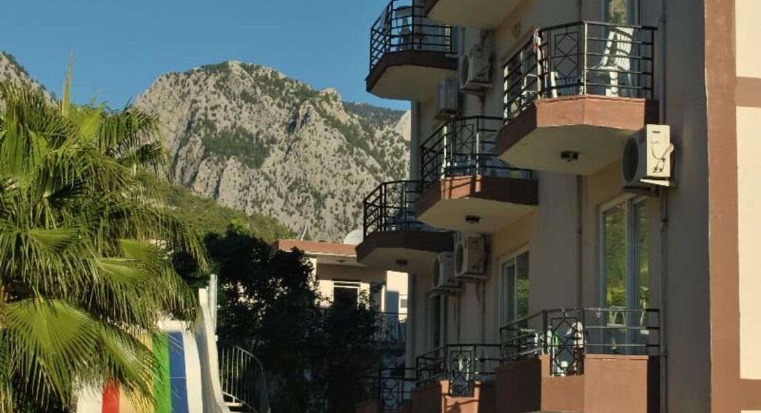 Отель небольшой, дешевая трешка. При заселении попросят денег, со словами: - Вам нужен хороший номер, или нет?))). Платить или нет, решать вам, лучше сперва идти и смотреть… Состояние номера нормальное, только из-за влажности, в некоторых местах стены сырые и облезают. Нет холодильника. Вид из окна, на стройку, на трассу в 100м. (Анталия – Кемер ) – шумно круглосуточно, и чье то хозяйство (петухи, овцы и козы –Кукарекают,блеют…и т.д.) – шумно, пахнет говном утром и особенно после дождя. Но выше всего этого горы, красиво, но они задерживают облака, из-за чего почти всегда облачно, очень влажно и мало солнца. Исходя из всего выше сказанного, если не сидеть в номере, то не страшно.