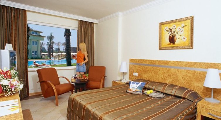 Отдохнули отлично, отель понравился. Заселили быстро, денег не просили, мы тоже не навязывались))) Номер 2116 на 2 этаже (в лифте нажимаешь кнопку 1, потому что лобби - это кнопка 0). Номер отличный, мебель новая, ковролин на полу, постельные принадлежности новые и чистые, уборка ежедневно, поверхностная, без доплат, полотенца меняли каждый день, туалетная бумага, мыльце, гель в малюсеньких бутылочках, вода негазированная по 0,5 и газированная по 0,3 пополнялись ежедневно. Халатов, тапочек, ватных палочек и дисков, зубной пасты и прочей мыльно-рыльной продукции в отеле в номерах не выдают. Как нет и чайника, и чайных принадлежностей – итак целый день везде на территории кормят. Сейф бесплатный. Фен мощный. Телевизор современный, есть 4 русских канала плюс 2 казахских, которые вещают на русском языке. Холодильник есть. Балкон выходил на крышу столовой, запахов и дыма в номере и на балконе НЕ было. Панорамный вид был на трассу Анталия- Алания, кусочек моря, пустырь, жилой дом. Музыка и шум-гам от бассейна и столовой были не слышны. WI-FI номере, на бассейне и в корпусах был постоянно. Как подключится – есть подробная инструкция на стойке ресепшна или можно напрячь дежурного на ресепшне. Здесь же можно поменять свои деньги на лиры, курс невыгодный на 1 лиру ниже, чем в банке. Так что мы поменяли деньги только на проезд до Алании. В Алании сходили в Денизбанк и обменяли по нормальному курсу (6,1 за доллар). В обменнике в Алании курс был на тот момент 5,8. При себе надо иметь загранпаспорт и туристический ваучер. В моем любимом Мигросе тоже меняют по для них выгодному курсу (расплачиваешься в долларах, а сдача в лирах). Банков в Алании много, так что особо искать не придется. В банке подходите к охраннику, говорите: ченж мани, охранник дает вам талон электронной очереди, ждете когда ваш номер будет на табло. Подходите, садитесь к операционисту, опять говорите: ченж мани, операционсит пишет на бумажке для вас курс по какому состоится обмен, вы говорите: окей, даете паспорт и туристический ваучер, свои доллары и получаете квитанцию и лиры. Это совсем несложно.