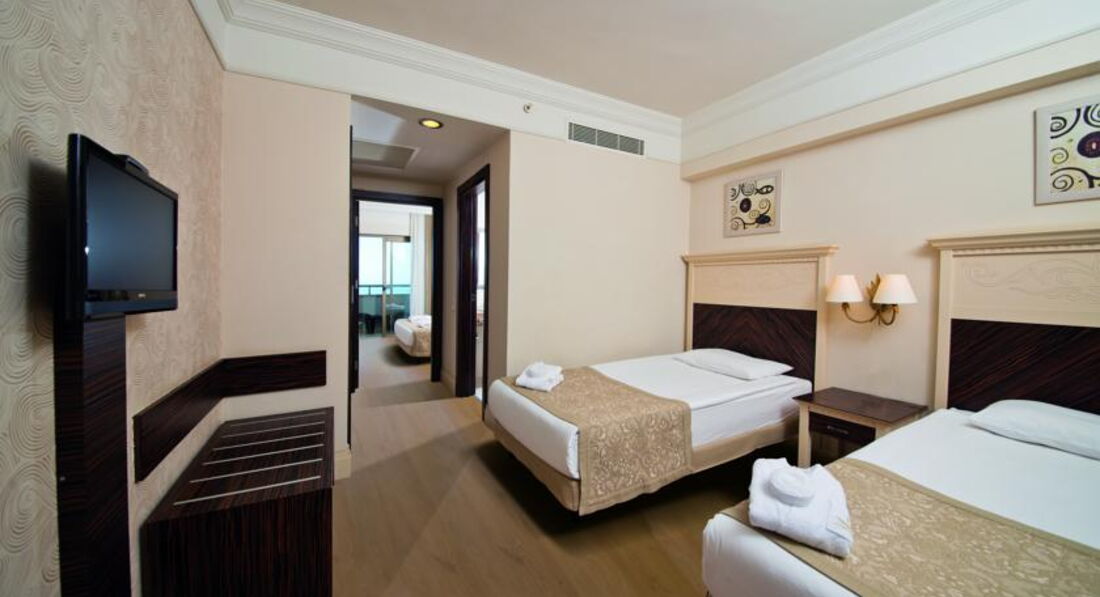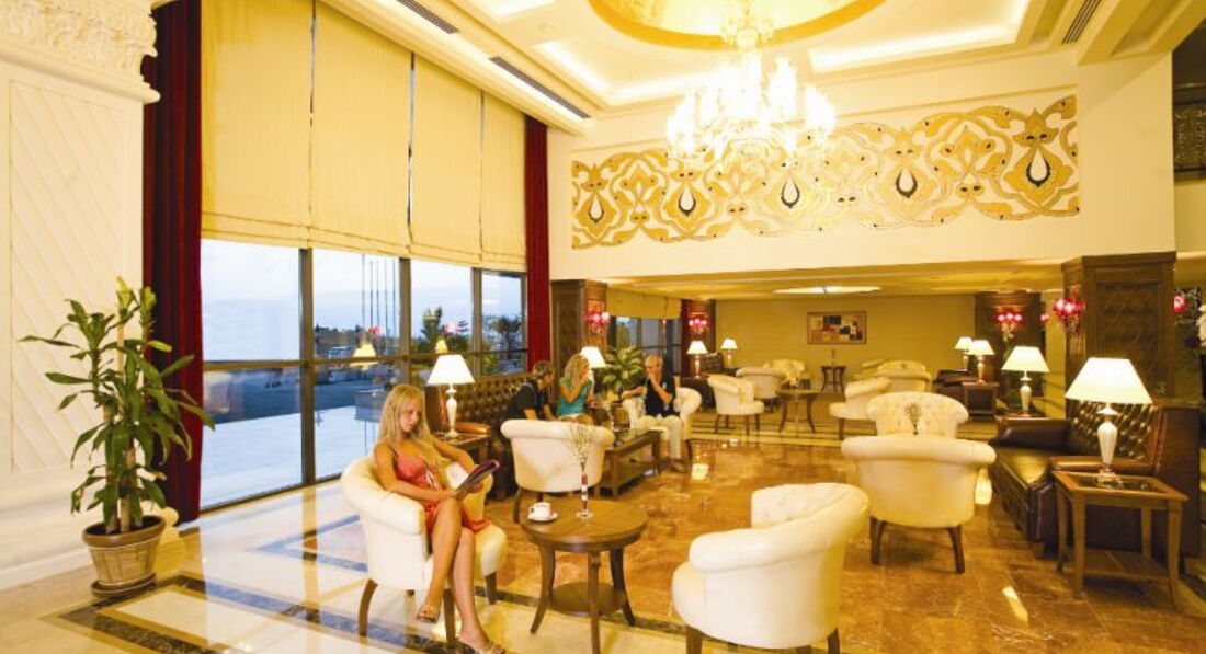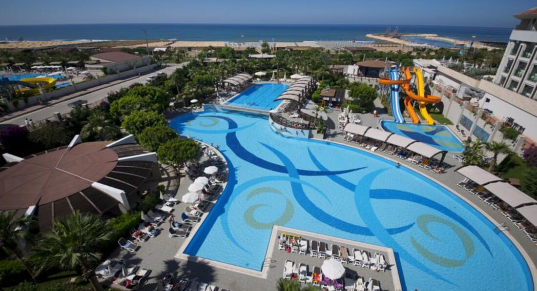 Попали в этот отель по рекомендации друзей, которые отдыхали там уже не первый раз. Первое впечатление пожалуй как и у всех Турецких отелей... красиво, блестяще, дорого... Прилетели рано утром, и к моему удивлению разместили сразу, ожидание составило 5 минут на ресепшене. Номера стандарт достаточно вместительны, комфортные, ничего лишнего. МОРЕ... первые 1-2 дня было как нам показалось достаточно прохладное... но то ли мы аклиматизировались, то ли алкоголь начал усваиваться... но на второй день мы уже во всю купались, как и все остальные постояльцы. Хочу сразу обратить внимание, что пляж у отеля (по сравнению с соседними) самый густонаселенный, но лежаков всегда хватало...Теперь пожалуй о самом главном, - СЕРВИС в отеле меня очень сильно порадовал... ВСЕ и ВСЕМ!!!! 2-е детей не вылезали из миниклуба (10 и 5 лет), очень интересные программы развлечения и занятий. Особое СПА-СИ-БО Татьяне, Гюзель и Кити!!! Официанты в барах и отеле просто РАКЕТЫ. Все очень учтивые, ненавязчивые и дисциплинированные. Анимационные программы весьма интересные, часто выступали "приглашенные" артисты. Еще хотелось бы сделать акцент... по моим впечатлениям отель ориентирован на немецкую публику (из РОССИИ мы были там одни), но к концу нашего отпуска все объявления на шоу дублировались и на Русском языке. Кстати... по приеду на флагштоке отеля не было Российского флага... появился на 3 день нашего прибывания... Не каждый бы конечно заметил бы... но приятно! ИТОГ... Реально понравился, поеду туда с семьей ЕЩЕ, - ОДНОЗНАЧНО ДА!!! (и вам рекомендую).