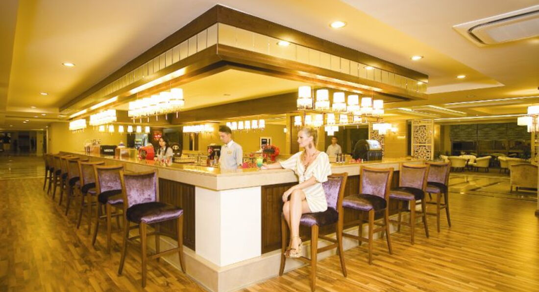 Бари та ресторани: Ресторани А'LA CARTE османська кухня, італійська, далекосхідна, рибний - 19:00 - 21:00, барбекю 19:00 - 21:00, фруктовий стіл 21:30 - 24:00. Лобі бар LOUNGE 18:00 - 24:00 всі місцеві алкогольні та безалкогольні напої, ірландський бар 24 години (всі місцеві та імпортні напої), дискотека 23:30 - 02:00 (всі місцеві та імпортні напої), бар на пляжі 10:00 - 18:00 ВСІ (всі місцеві та імпортні напої), бар біля басейну 10:00 - 24:00 (всі місцеві та імпортні напої), кальян тераса 17:00 - 23:00 (за додаткову плату ).