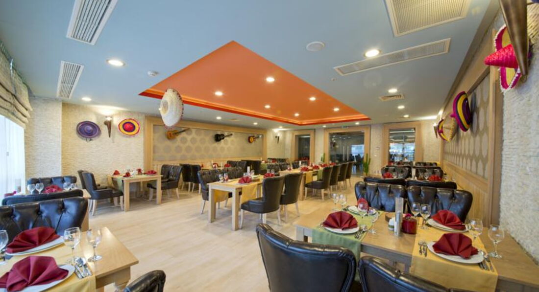 • ресторани a la carte: 5 (далекосхідний, османський, середземноморський, рибний, барбекю – за попереднім записом, за час проживання відвідування одного з ресторанів 1 раз – безкоштовно)