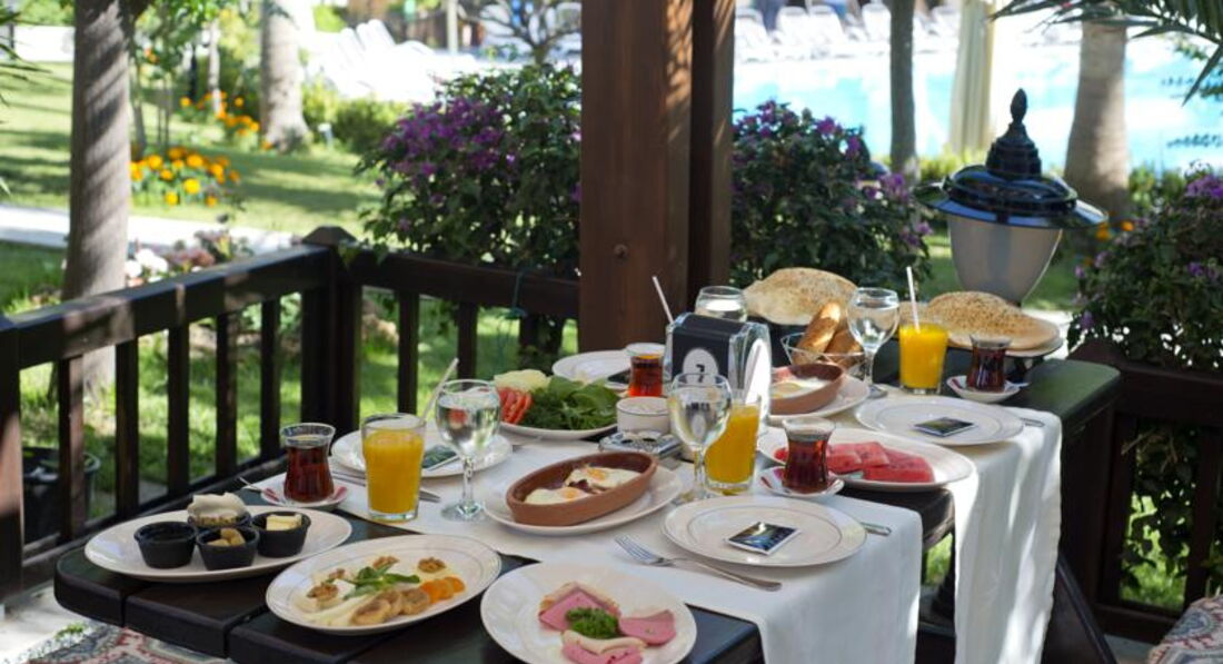 Концепція «УЛЬТРА ВСЕ ВКЛЮЧЕНО»: Ultra All Inclusıve Сніданок, Пізній сніданок, обід та вечеря - шведський стіл, полуденок, снек, закусочна на пляжі, Фрукти та морозиво у певні години, нічний суп, при проживанні в готелі щонайменше 1 тиждень можна скористатися 2 A'la Carte ресторану, а при проживанні в готелі 2 тижні можна скористатися послугами 4 A'la Carte ресторану, за попередньою резервацією, Обслуговування в номерах - платне.
