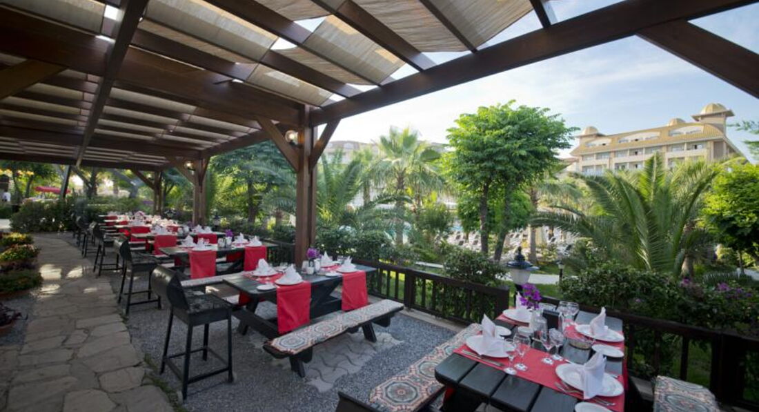 Ехали в данный отель по рекомендации друзей. Заказывали индивидуальный трансфер и регулярный рейс. Все было четко как часы. приехали в отель рано утром, но были приятно удивлены теплой встречей и размещением в течении 5 минут. И начались приятные минуты времяпрепровождения. Отметить можно практически ВСЕ! шикарный спа центр с хамамом, бассейны и горки, великолепная кухня с богатейшим выбором мяса. рыбы, диетических продуктов, фруктов и моря сладостей. А-ля карт рестораны на самом высоком уровне. Особо хочу отметить барбекю ресторан с шефом Абдуллой. Я сам хорошо разбираюсь в мясе и был немало удивлен прекрасной подаче отборной баранины и говядины для самостоятельного приготовления на мобильных индивидуальных жаровнях. Весь персонал в отеле вышколен, не показательно вежлив и стремиться помочь с любой малейшей просьбой. Ухоженная территория, чистейший пляж. До мелочей продуманная анимация и система питания в течение дня. Отдельное спасибо руcскоговорящему представителю отеля Yulia Turkoglu, которая помогла нам с размещением, трансфером и приятным подарком на мое день рождения. хочется вернуться в это место еще не раз.