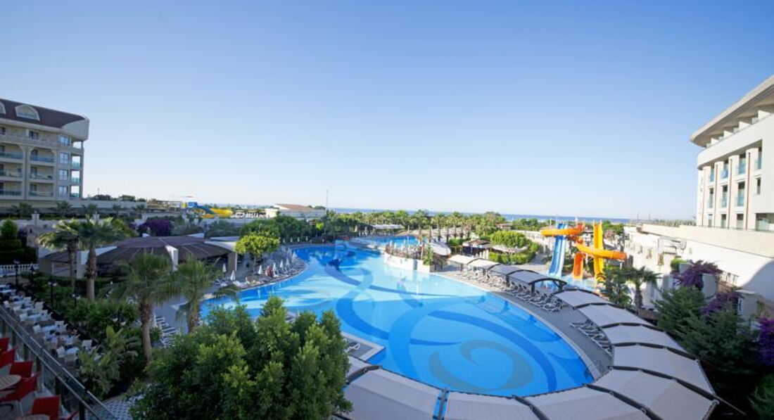 Отдыхали с мужем и 2 детьми 11 лет и 2 года. Были во многих отелях, и могу сказать, что это один из лучших! Приехали вечером, нас угостили шампанским и моментально заселили. Номер большой, все прекрасно работает. Вид на соседний отель. Честно говоря, вид нам абсолютно безразличен, т.к. в номере только ночуем)). В номере чайник с набором чай-кофе, шампуни, гели, тапочки, расчески, ватные диски и т.д., в общем все как полагается ) Докладывали все своевременно. Минибар- вода, минералка, кола, фант, спрайт, пиво (250 мл), пополняют ежедневно. Нас поначалу испугала маленькая территория, т.к. любим отели, где есть место погулять)). Но в итоге здесь оказалось настолько уютно и все продумано до мелочей! Чудесный мини клуб для детей с крытой детской площадкой. Отдельное спасибо детским аниматорам. Замечательные шоу в амфитеатре по вечерам! Еда вне всяких похвал! Есть все и на любой вкус: и мясо и рыба и курица, и на гриле и варенное и жаренное, куча десертов, много овощей, фруктов, клубника, мороженное, свежевыжатый апельсиновый сок по утрам. Единственное, абрикосы, сливы, персики были кислые и неспелые, но может просто еще не сезон((. Есть диетическое меню для малышей. За время нашего отдыха было два гала- ужина. Один в турецком стиле. Очень красиво. Есть и пить можно круглосуточно. То снек-бар, то вафли,то пирожные, то турецкие лепешки. Холодный чай и фрукты привозят на тележке прямо к бассейнам. Про алкоголь особо сказать ничего не могу, т.к. не увлекаемся). В баре делают очень приятные слабо-алкогольные коктельчики, Муж брал пиво-тоже неплохое.Пляж рядом, песчаный, всегда есть свободные лежаки (и у бассейнов кстати тоже). Очень порадовала дорожка вдоль моря, набережная, где можно прогуляться вдоль отелей. Есть 3 водные горки, для нас это важно, т.к. любители)) Горки работают с 10 до 11 и с 14 до 16. Очередей нет, можно накататься вдоволь)) Горки взрослые, но пускают даже двухлетних малышей в сопровождении родителей. Всегда на месте спасатели, следящие за безопасностью.Отношение персонала замечательное - это касается и официантов, и уборщиц (интересуются каждый день, есть ли претензии), и персонала на ресепшн. Нет никакого разделения по национальному признаку. Контингент- семьи с детьми, либо возрастные пары (в основном немецкие). Русских тоже очень много. Также встречали поляков, французов, но по чуть-чуть)). Из недостатков могу отметить только не особо хороший wi-fi. В номере оооооочень слабенько берет или вообще отсутствует. Хороший сигнал только на ресепшн. Из экскурсий брали акваарк Риксос (в Белеке). Его сейчас очень пиарят-предлагают, во всяком случае представители Пегас. Были не в восторге. Народу тьма,часть горок закрыто, очередь на одну горку 30-60 минут!!!!!!!!!!!! Ну это просто к слову пришлось))). В целом впечатление от отеля осталось отличное, рекомендую для семейного отдыха, останетесь довольными))))