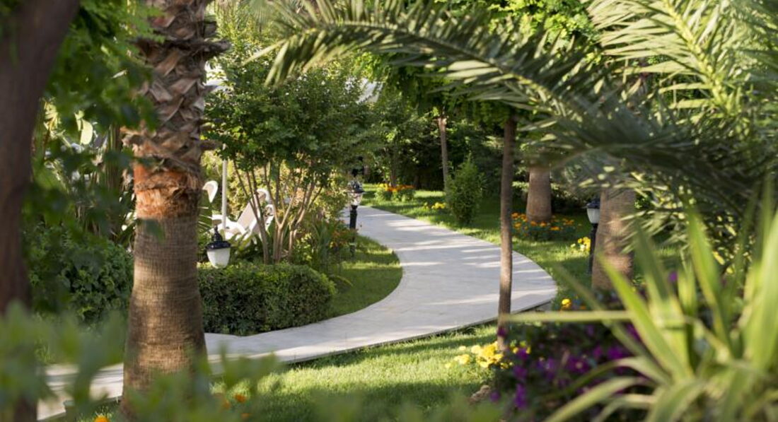 Отдыхали с дочерью в этом отеле второй раз, и это говорит о том, что первый отдых в нем очень понравился, так, что захотелось отдохнуть в нем еще. Отель достаточно новый с хорошими номерами. Небольшая территория ухожена. Зелень, цветы, пальмы. Между отелем и пляжем располагается променад с ухоженными аллеями, по которому вечером приятно прогуляться. На территории отеля 4 бассейна, в т.ч., для маленьких детей, а также 3 водные горки. Пляж песчаный чистый с тентами. Вода в море супер!