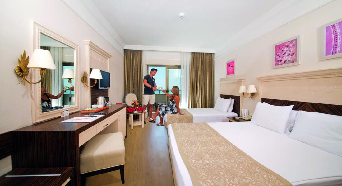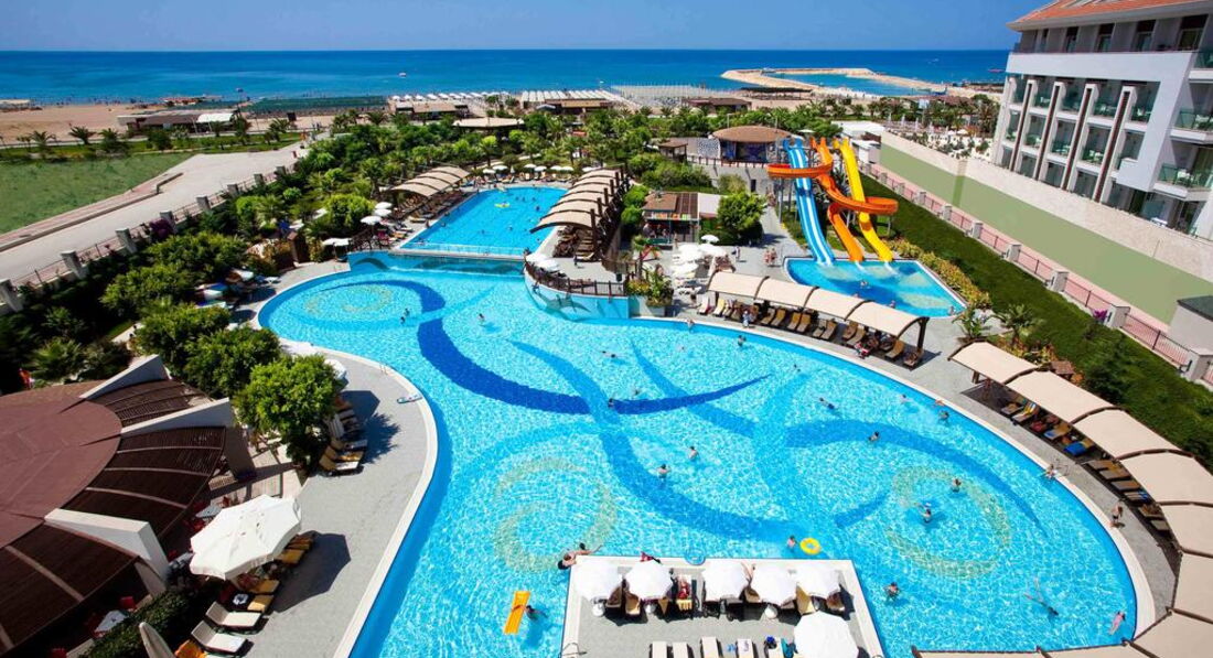 Aydinbey King's Palace розташований на березі Середземного моря. До послуг гостей власний пляж, 3 відкриті басейни, водні гірки, фітнес-центр та спа-салон.