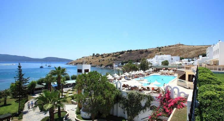 Отдыхали в отеле с начала июля 2011 г. Отель 5 звезд.Все понравилось. Если знать заранее что такое полупансион, то не будете разочарованы. Территория большая (относительно турецких отелей), ухоженная и красивя. Номера приличные. Персонал приветлив. Пляж самый лучший в этой бухте: дно песчаное, глубина далеко, поэтому с детьми лучше не бывает. Рядом у соседних отелей в воде камни, вход в море с причалов по лестнице или по мешкам с песком. Отель для спокойного отдыха- никакой анимации и дискотек, это все в соседних отелях, куда можно свободно пройти. Питание отличное особенно ужины (есть с чем сравнить). Россиян единицы, в основном европейцы. До центра Бодрума 10 минут на маршрутке или кораблике по воде. Можно и пешком 15 минут. Рекомендую этот отель.