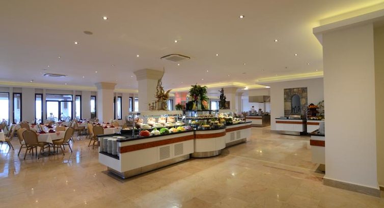Ужин:за неделю отдыха ни разу не повторилось ни одно горячее блюдо. Каждый день разный суп(один вид),по одному горячему блюду из рыбы, курицы и говядины, разнообразные гарниры(картофель фри, картофельное пюре, овощи на пару, шпинат)Пусть может не так разнообразно, но еда очень качественная и вкусная. Из фруктов всегда были:персик, виноград двух видов, сливы,арбуз, дыня, яблоки и груши. И множество салатов и свежих овощей, а так же холодных закусок, минимум 3 вида сыра. Сладостей не менее 10-ти видов. Напитки на ужин все платные, как и везде при типе питания завтрак+ужин (вода 2.5 лиры за пол литра, 3.5 за полтора литра, 8 лир пиво 0.33, 8 лир бокал вина).