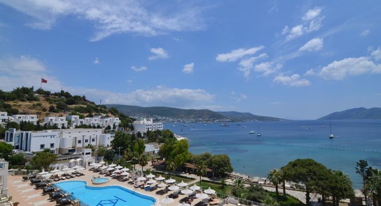 Отдых нам понравился! Теперь понимаю, почему о данном отеле мало отзывов-там практически нет русских!!! Номер был очень чистый и свежий, уборку делали каждый день, оставляли по 2 лиры, постель меняли почти каждый день. Питание отличное, полупансиона оказалось вполне достаточно))) Что касается напитков, да-дорого, но можно было покупать в маркете, который находится в 2-х минутах ходьбы. Сумку никогда никто не проверял, хотя она была далеко не дамская, а большая пляжная! Жутко читать отзывы, где пишут, что на охране отбирают напитки)))Это неправда! Да, нас ещё в автобусе гид предупредил, что нельзя проносить ни воду, ни спиртное, ни еду, но на практике, поверьте, было иначе! Что касается пляжа: всегда были свободные лежаки, никто не приходил в 7 утра и не занимал места, как это часто бывает!!! Полотенца можно было менять сколько угодно раз в день, никто за этим не следил! дааа, после обеда и в выходные приходили местные, но все вели себя спокойно. Периодически по пляжу ходит охрана, видимо следит за порядком. Море прекрасное!!! Чистое, прозрачное, НО не совсем теплое) Заходить было холодно поначалу. Заход в море гораздо лучше в левой части пляжа, полностью песчаное дно, справа камни. Глубина тоже умеренная! Территория отеля действительно небольшая, но весьма уютная. Анимации нет вообще никакой, лично для нас это было только плюсом! Ни разу не наблюдали пьяных тагильцев))) Вполне оценили прелесть полупансиона!!! Вечерами ходили гулять на набережную, если пешком, то минут 10-15, по пути местами крутые подъемы, но можно добираться на лодке, которая ходит довольно часто с пляжа, стоимость - 6 лир с человека в одну сторону. В городе одно занятие-это турецкий шоппинг))) Читала в одном из отзывов ещё до отпуска, что там обычно не торгуются, поскольку отдыхают в основном европейцы, но ничего подобного, мы торговались, как могли, получалось довольно неплохо)))Так что очень рекомендую данный отель и город Бодрум в целом!